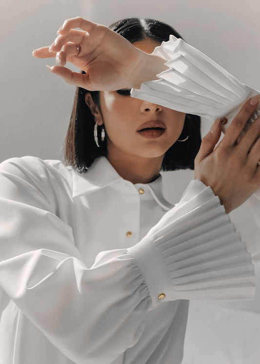 Peplum Button-Down Top & Lace Ruffle Skirt Set