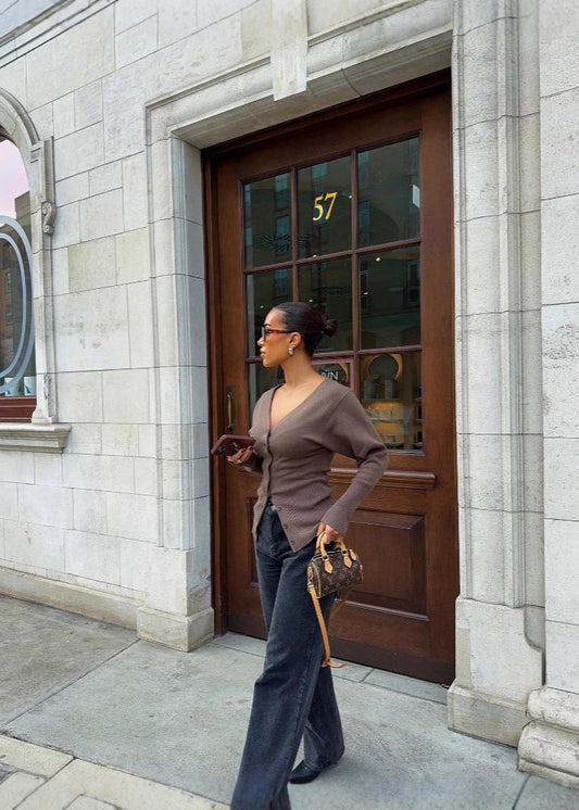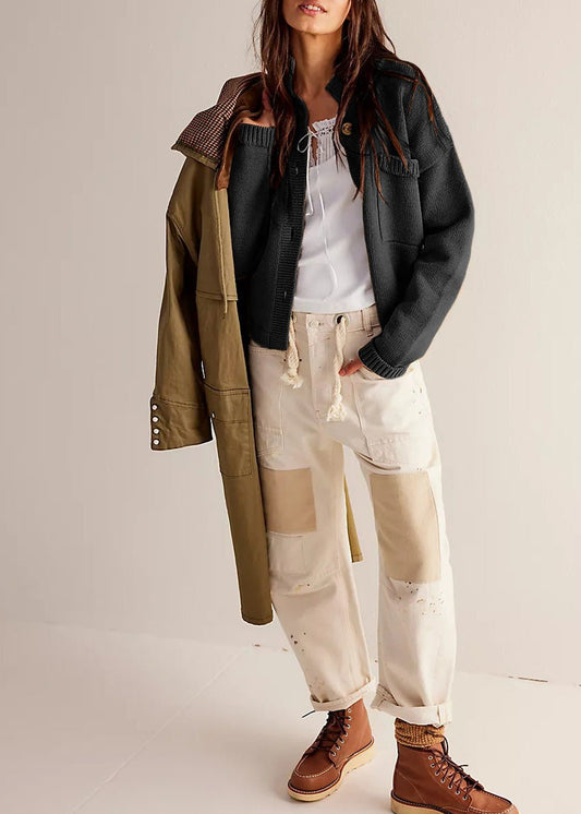 Chic Knitted Button-Down Cardigan with Stand Collar