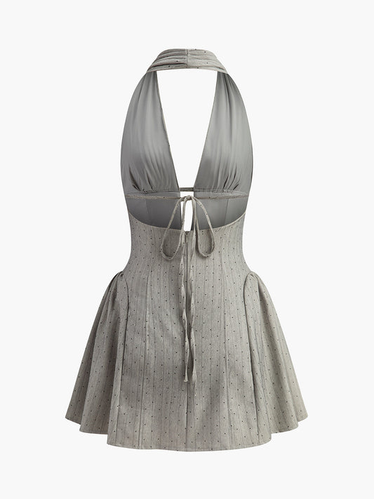 Back Tie Halter Pleated Dress