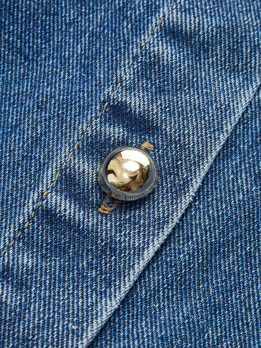 Denim Belted Button-Front Pleated Dress