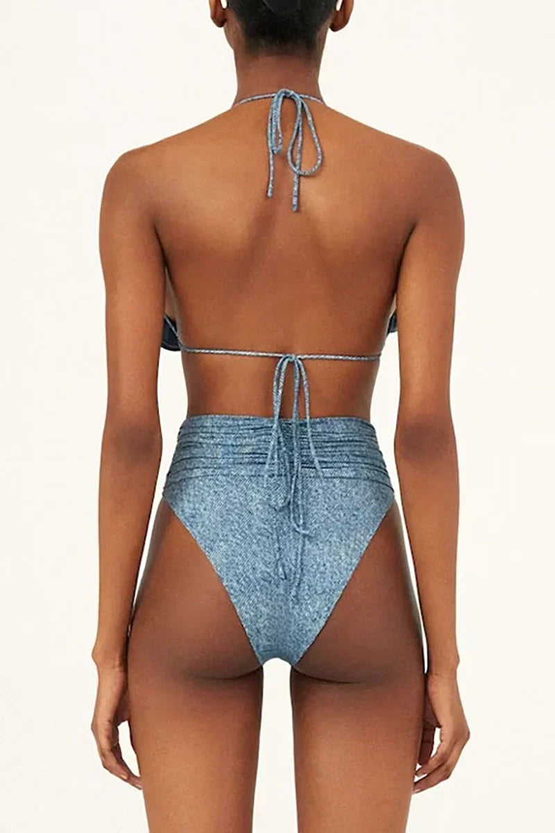 3D Floral Halter Sexy Bikini Set