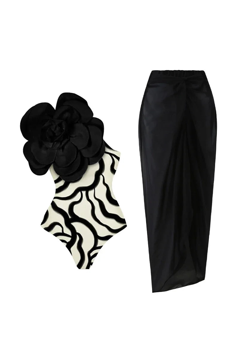 This elegant one-piece swimsuit features a striking 3D white floral embellishment, blending pure minimalism with bold romance. Its clean solid color and sculptural details create a sophisticated and unforgettable beachside look.