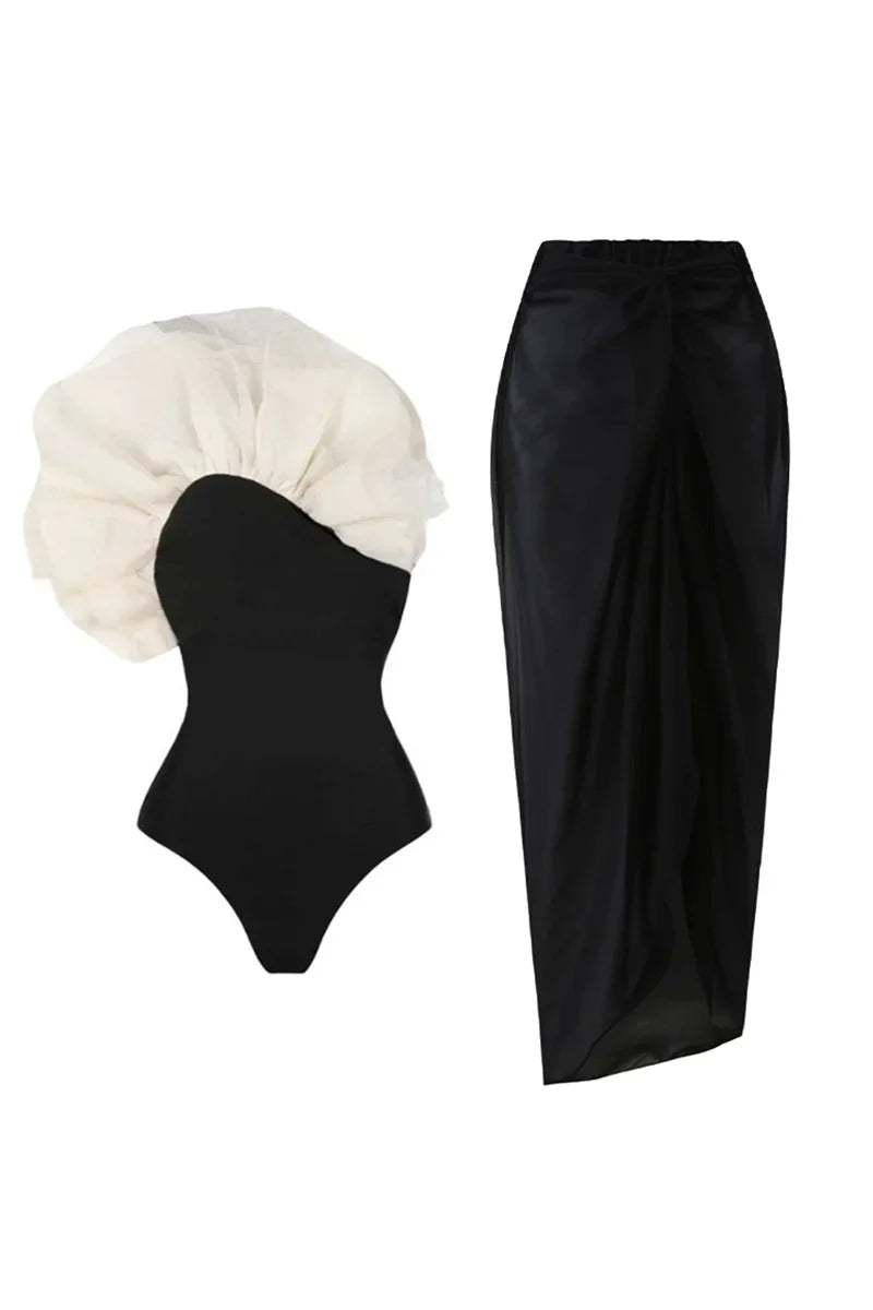 Make a bold statement with this elegant one-piece swimsuit, crafted from sleek solid-color fabric and adorned with a dramatic 3D floral appliqué. Designed to highlight feminine curves while adding a touch of high-fashion glamour to your beach look.