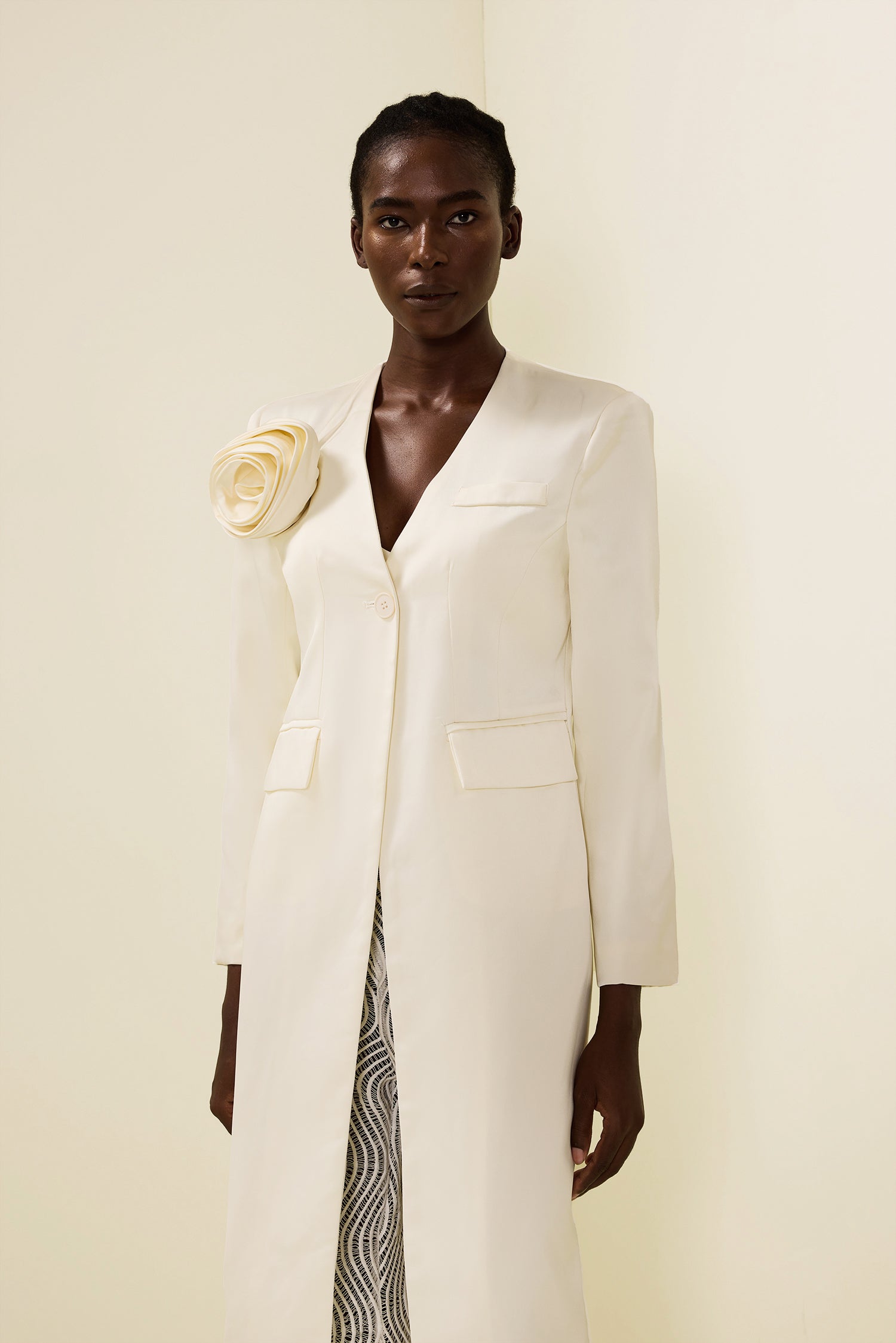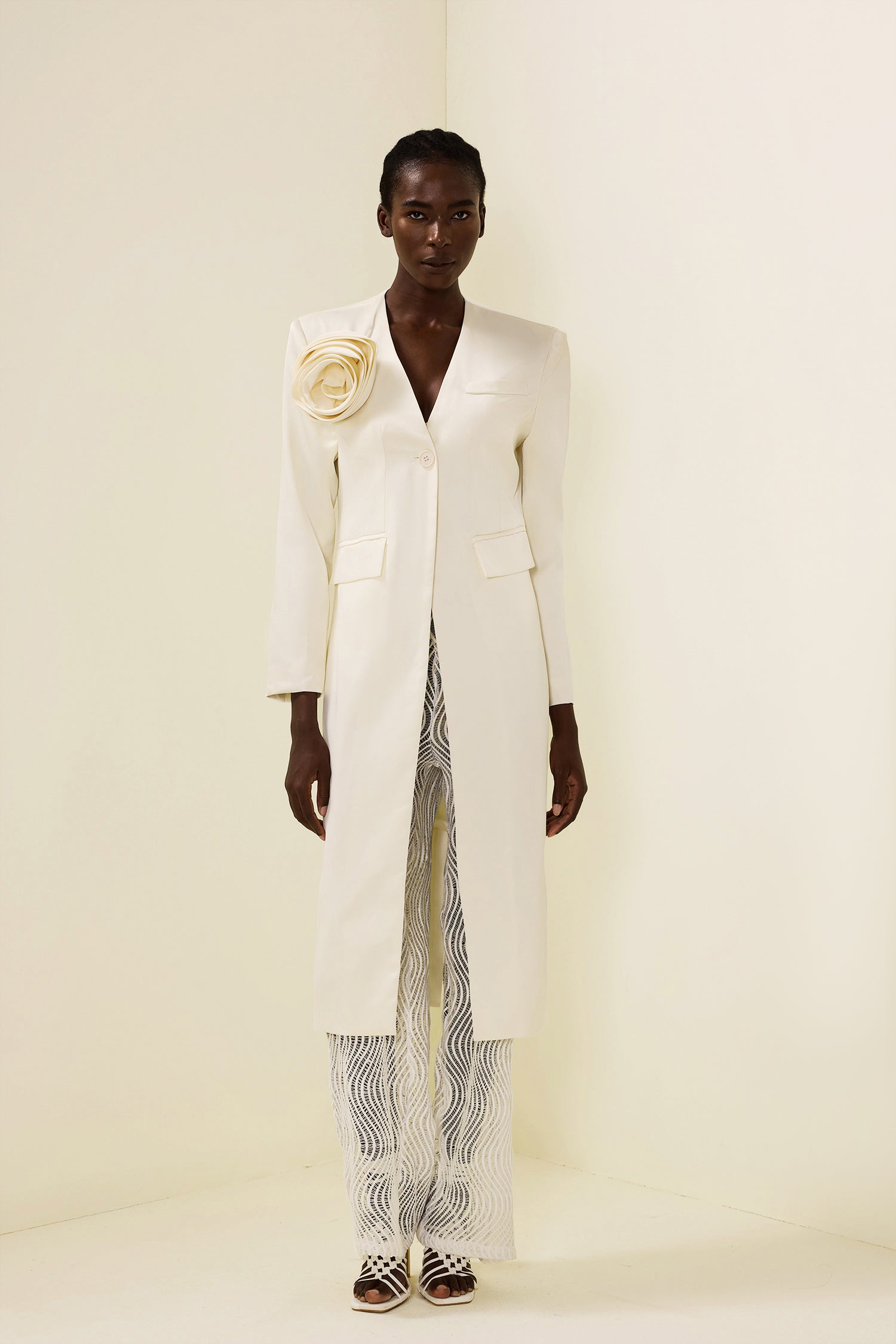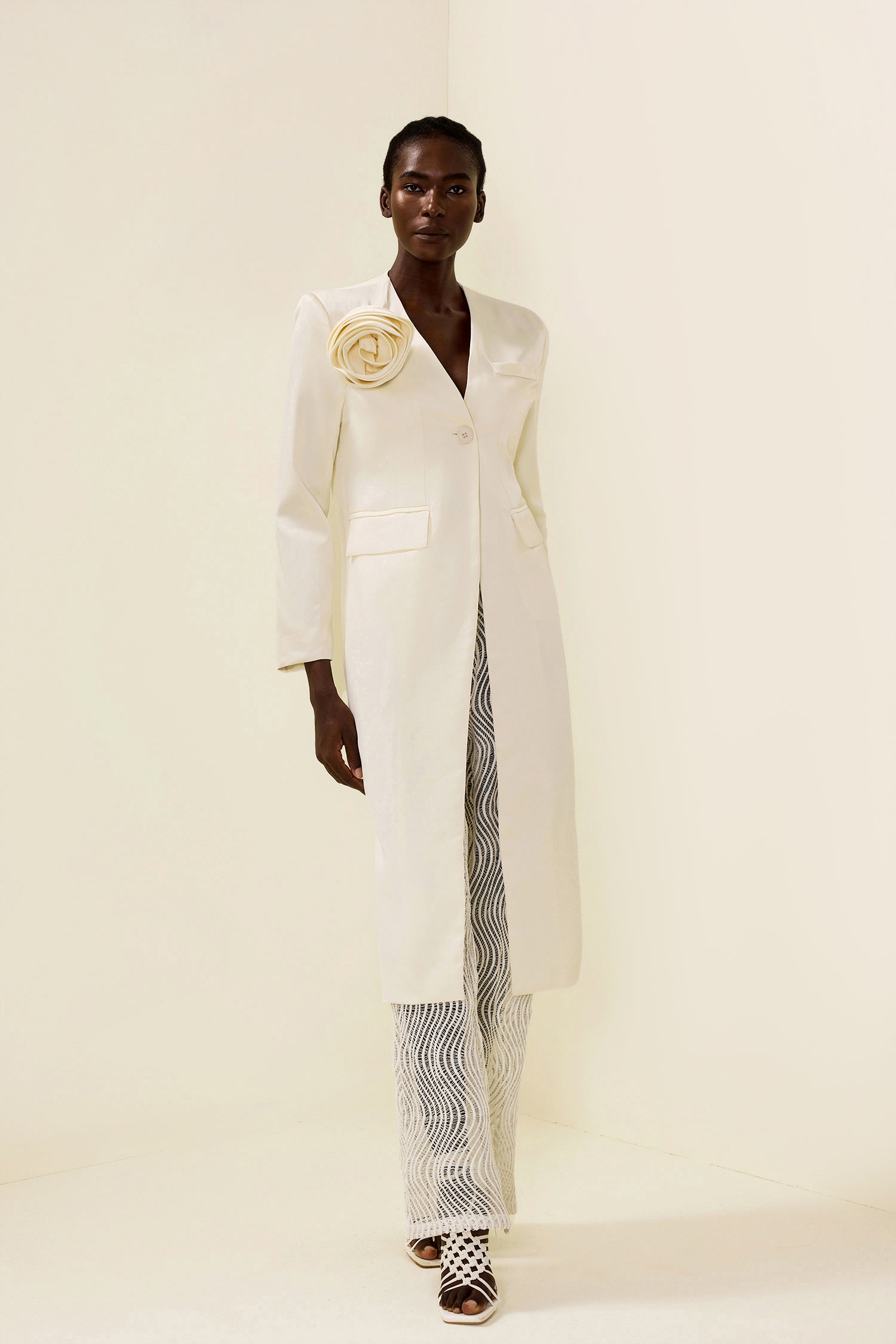 - Solid color, apricot, 3D floral, long sleeve, coat