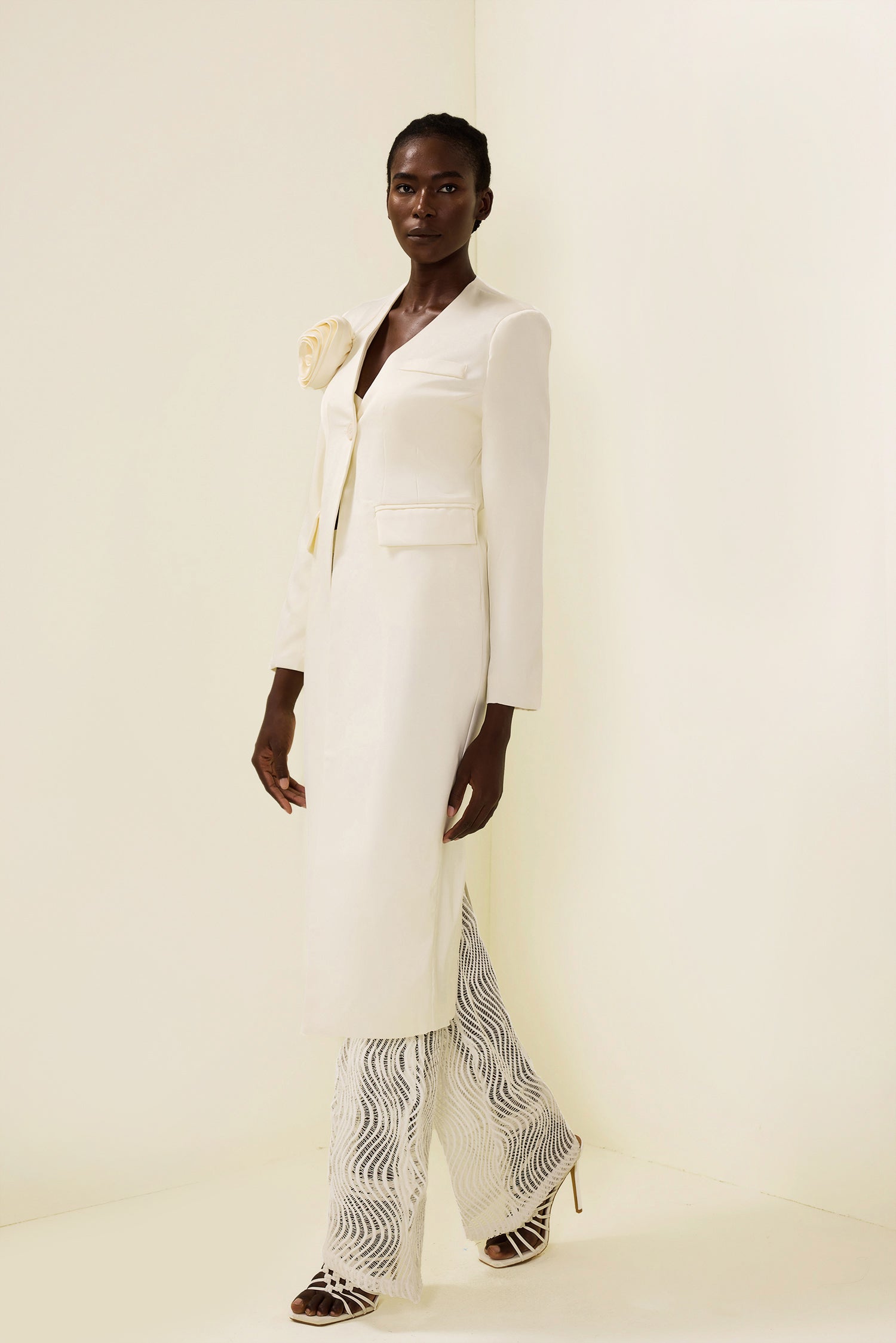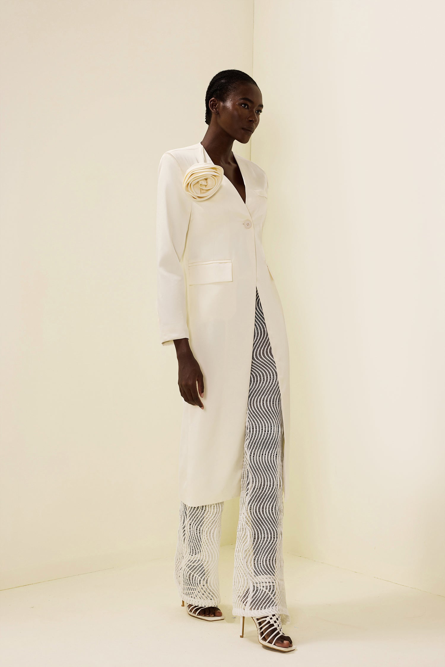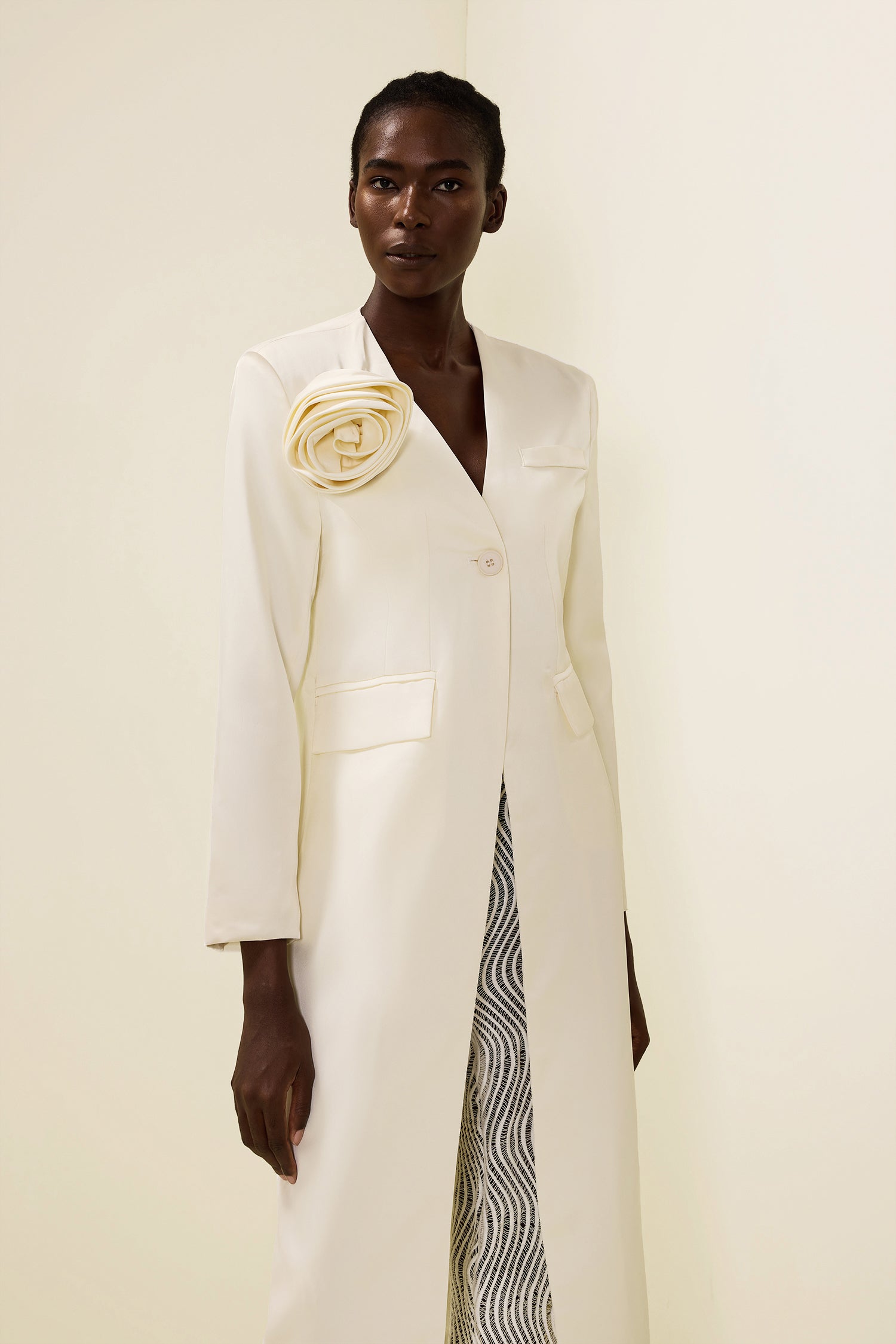 - Solid color, apricot, 3D floral, long sleeve, coat