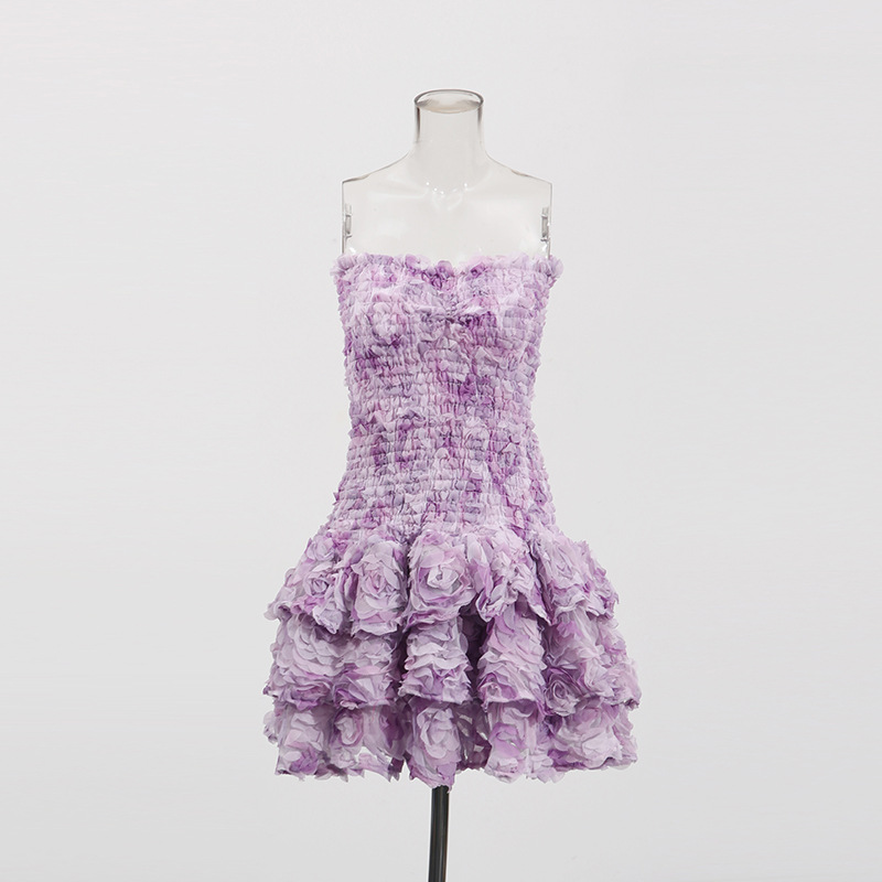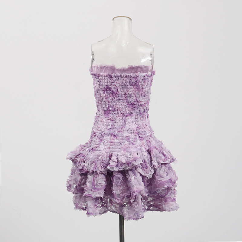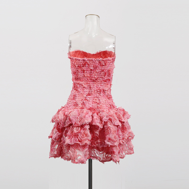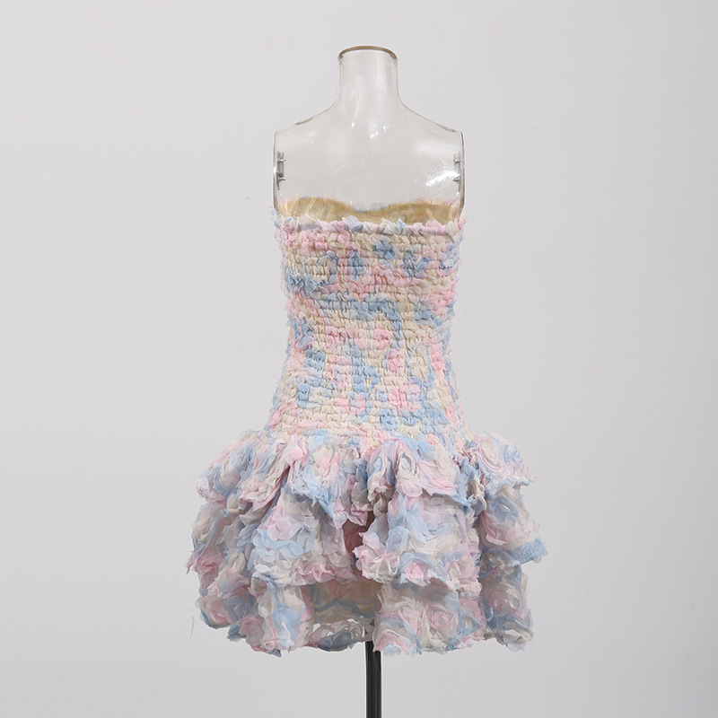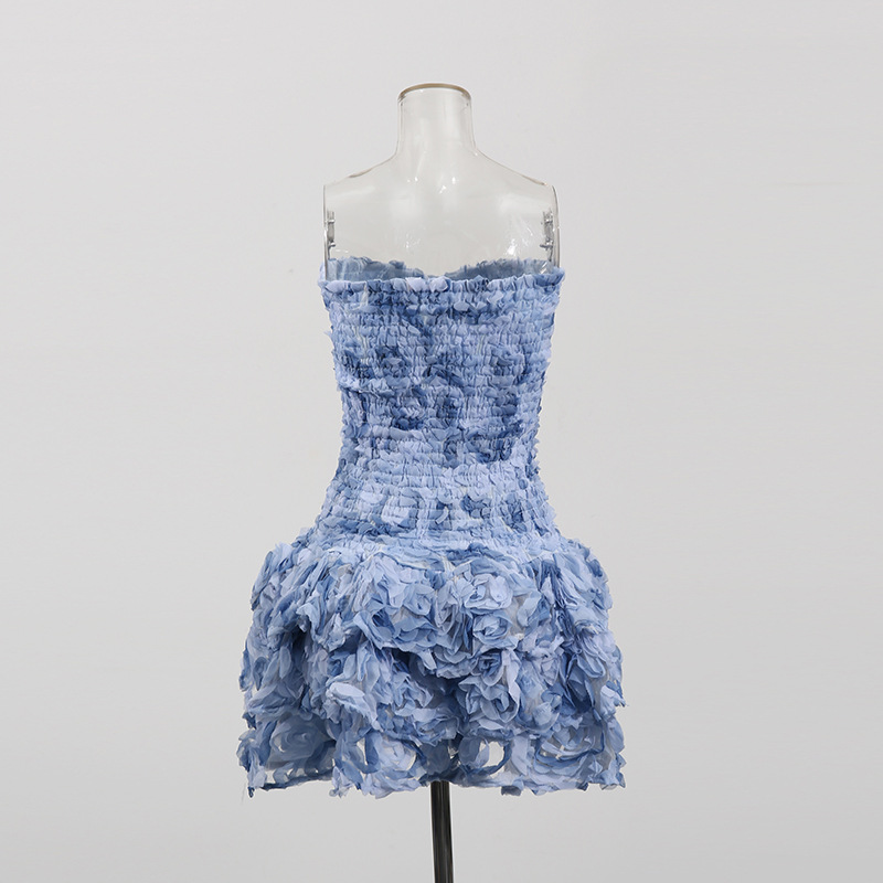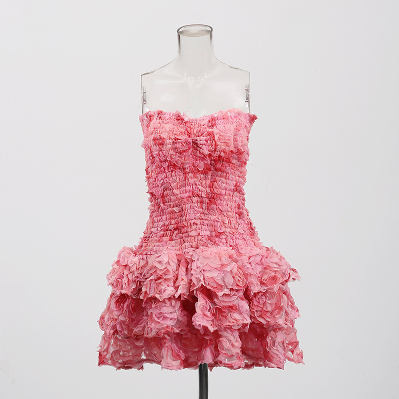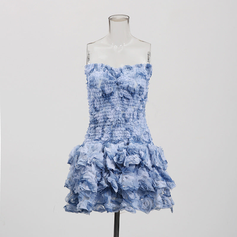 3D Floral Strapless Bodycon Mini Dress Summer Sexy Fashion