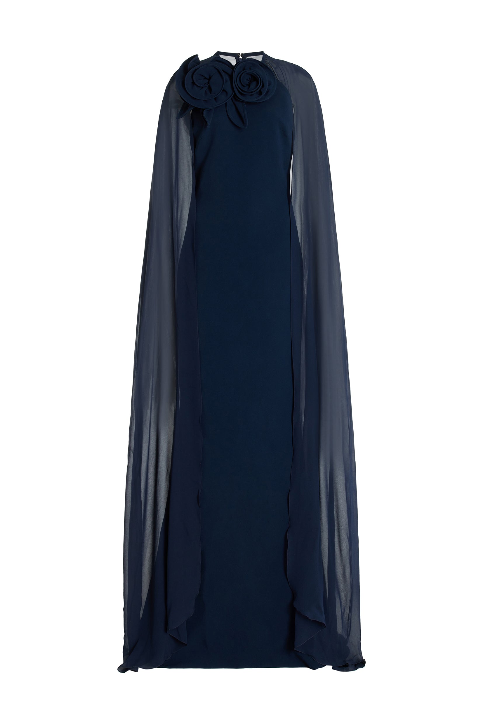 - 3D flower, chiffon, cape, solid color, maxi dress