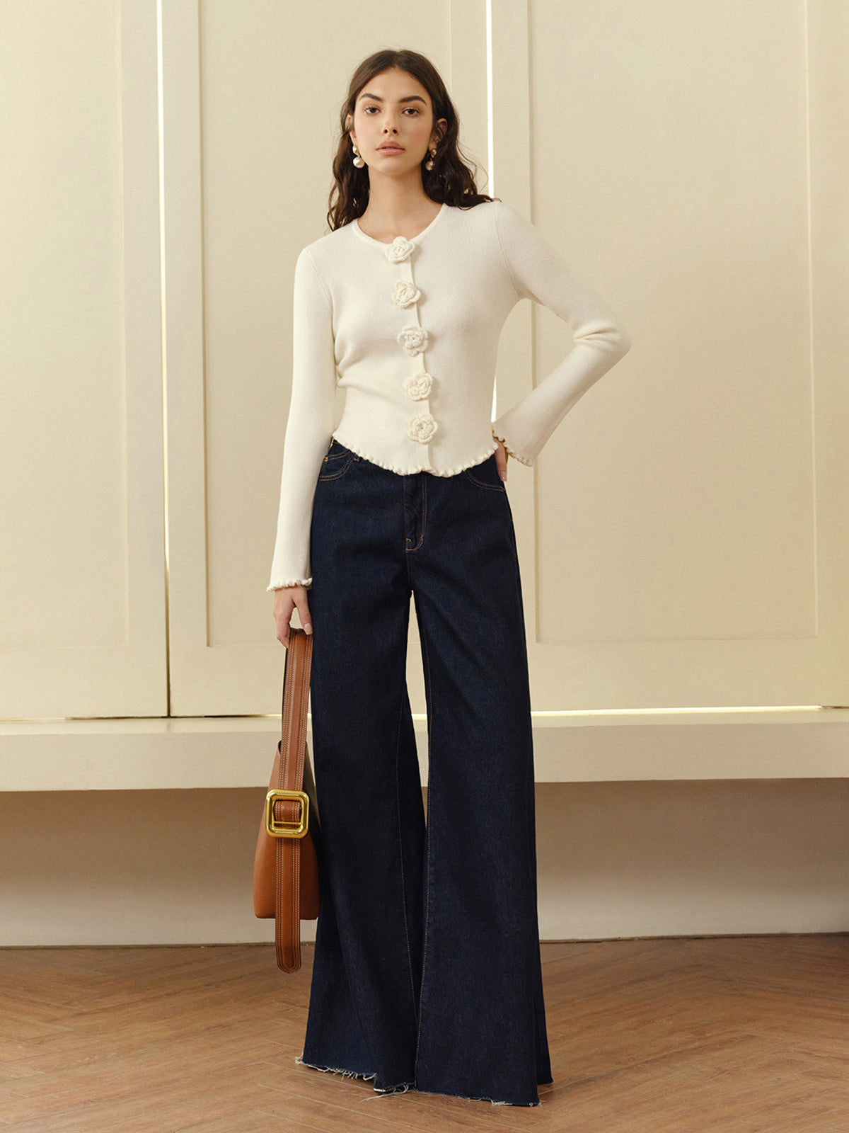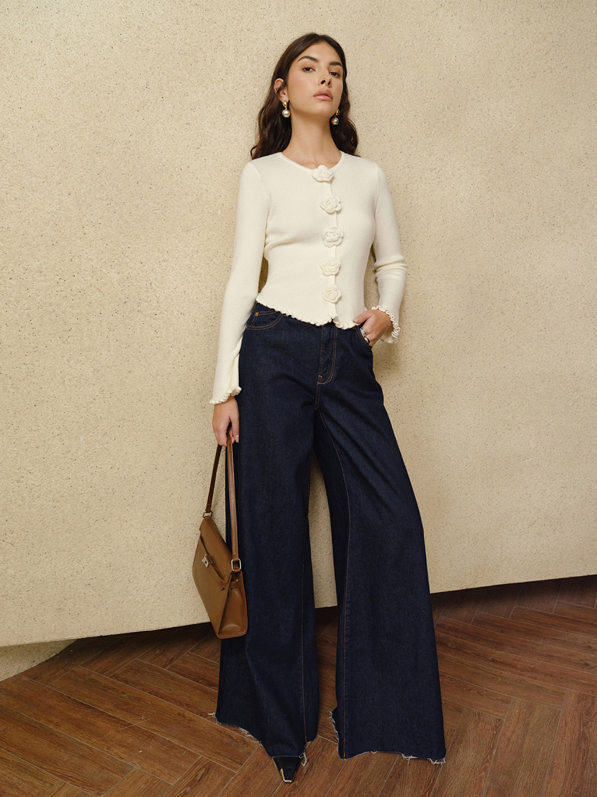 3D Flower Lettuce Trim Cardigan