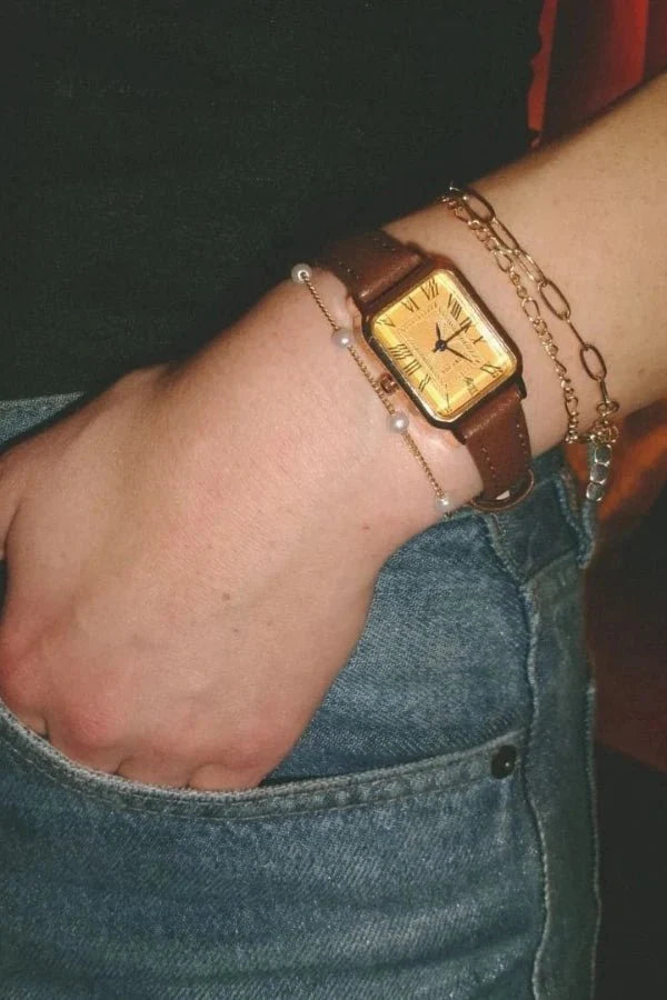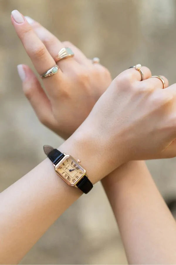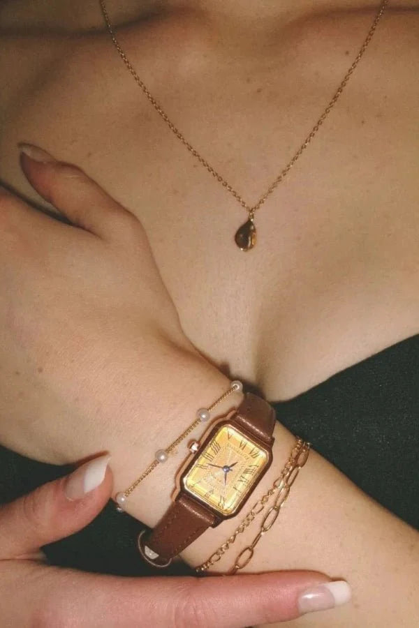 The Abella Leather Watch combines timeless design with natural materials. Its slim, round case and soft genuine leather strap give it a classic, warm appearance. The minimalist dial pairs perfectly with both casual outfits and elegant office wear.