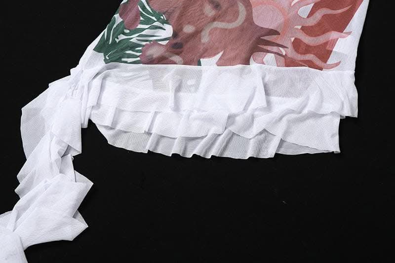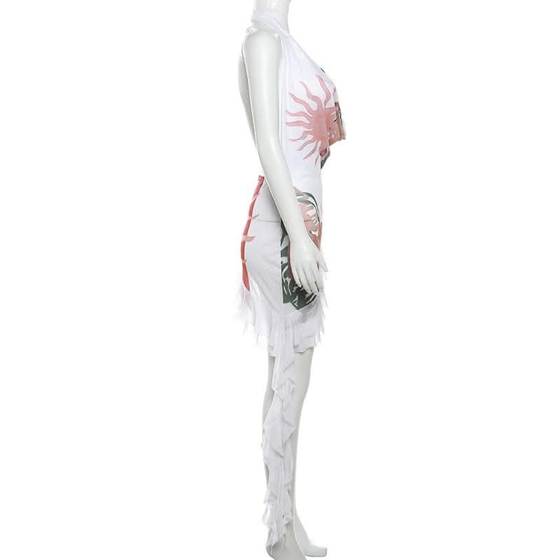 Abstract contrast cowl neck halter backless irregular mini dress-final-sale