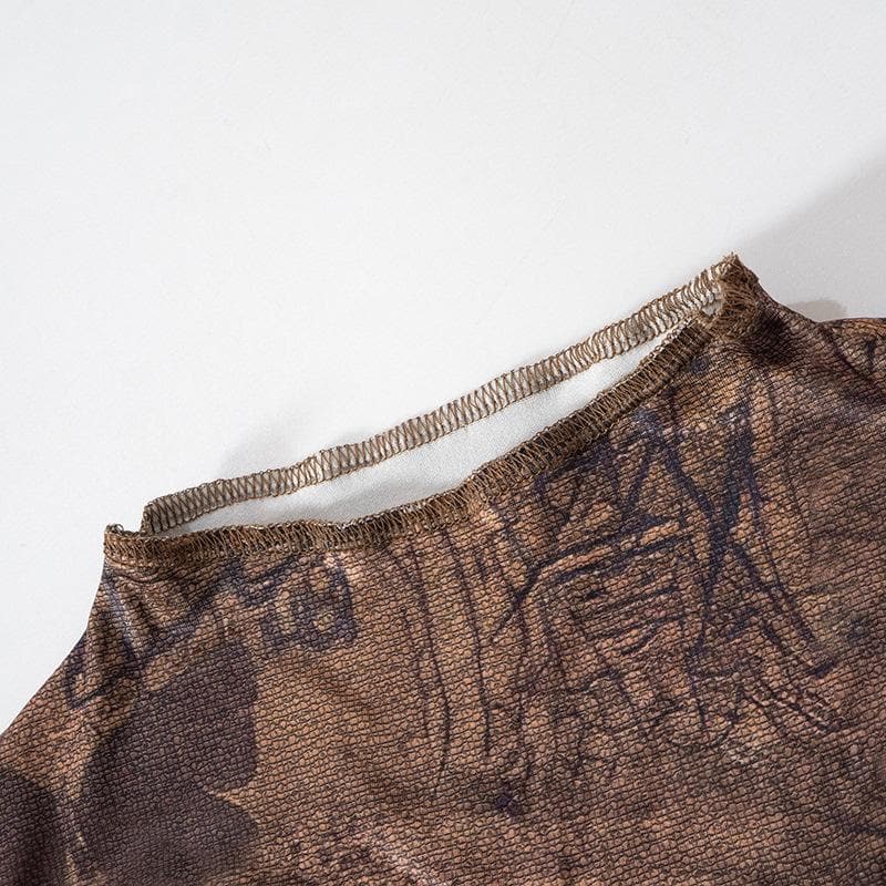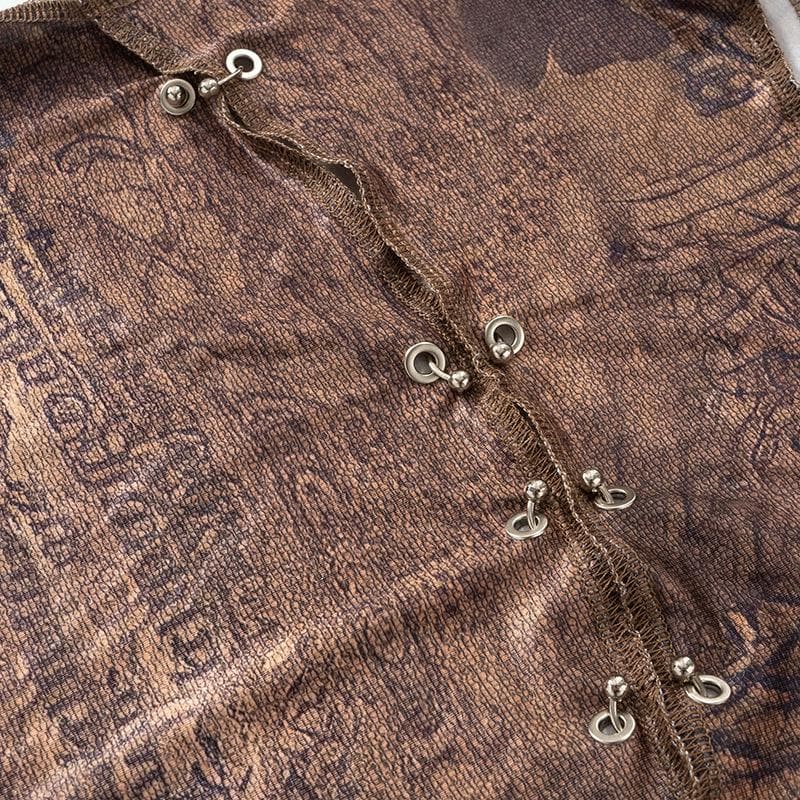 Abstract print hollow out stitch sleeveless cut out midi dress