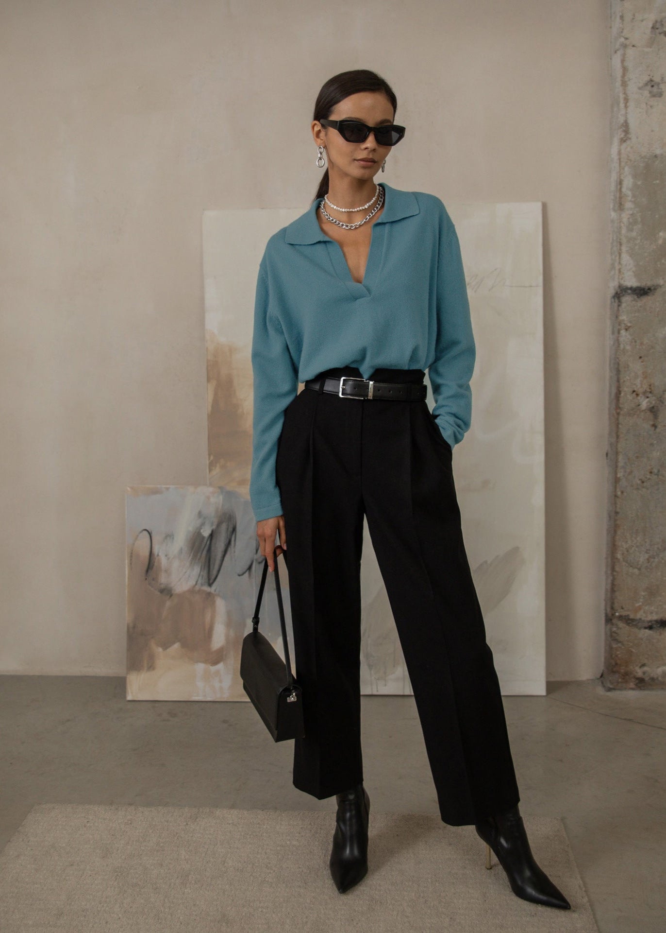Adele - Soft Knit Polo Sweater is a timeless staple designed for effortless sophistication. Featuring a relaxed fit with a subtle polo-style collar and an open V-neckline, this sweater blends comfort with refined elegance. Crafted from a plush, breathable knit fabric, it offers warmth without bulk, making it perfect for layering or wearing solo. The versatile silhouette pairs effortlessly with tailoRed trousers for a polished look or with denim for a laid-back vibe. Whether for crisp mornings or cool evenings, this sweater delivers understated charm for any occasion.