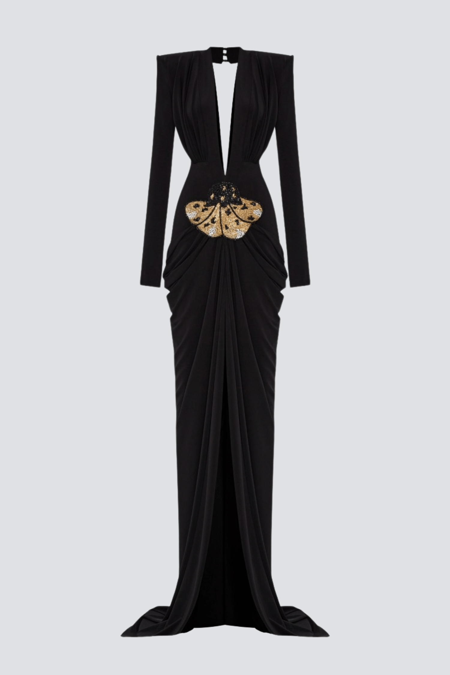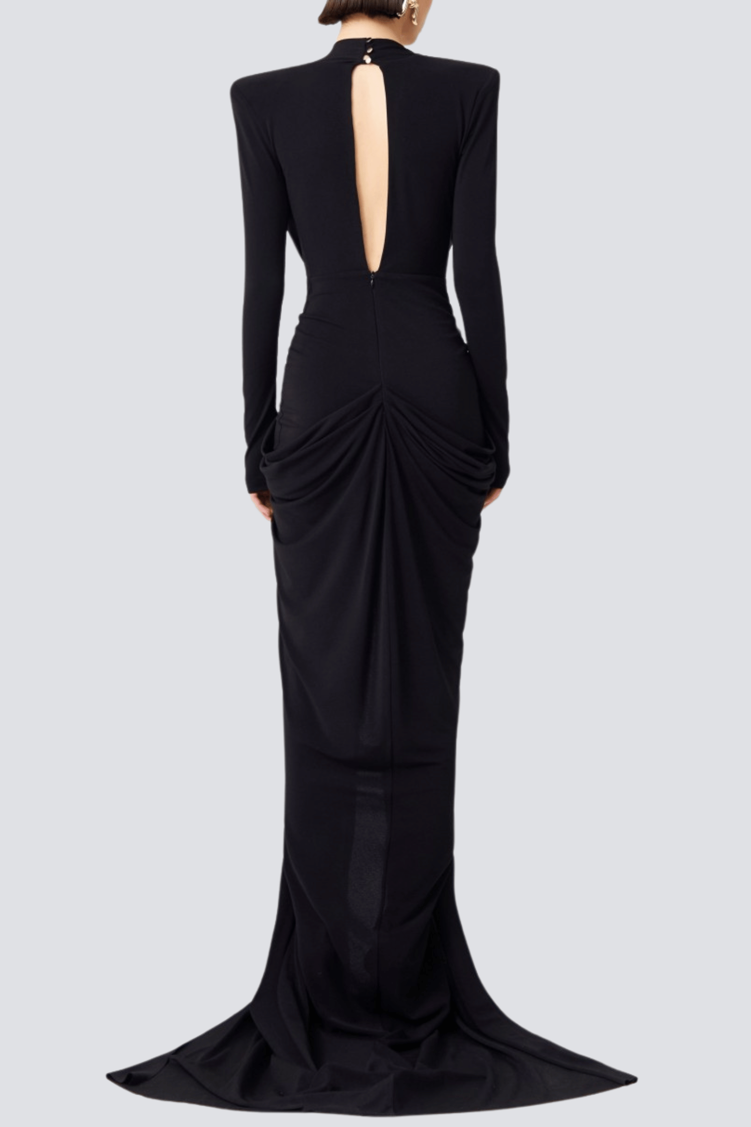 Upgrade your wardrobe with the Agata V-neck Ruched Maxi Dress. This elegant and exclusive dress features a flattering V-neckline and ruched details that enhance your curves. With its luxurious fabric and versatile design, this dress is perfect for any occasion. Elevate your style and make a statement with the Agata Maxi Dress.
