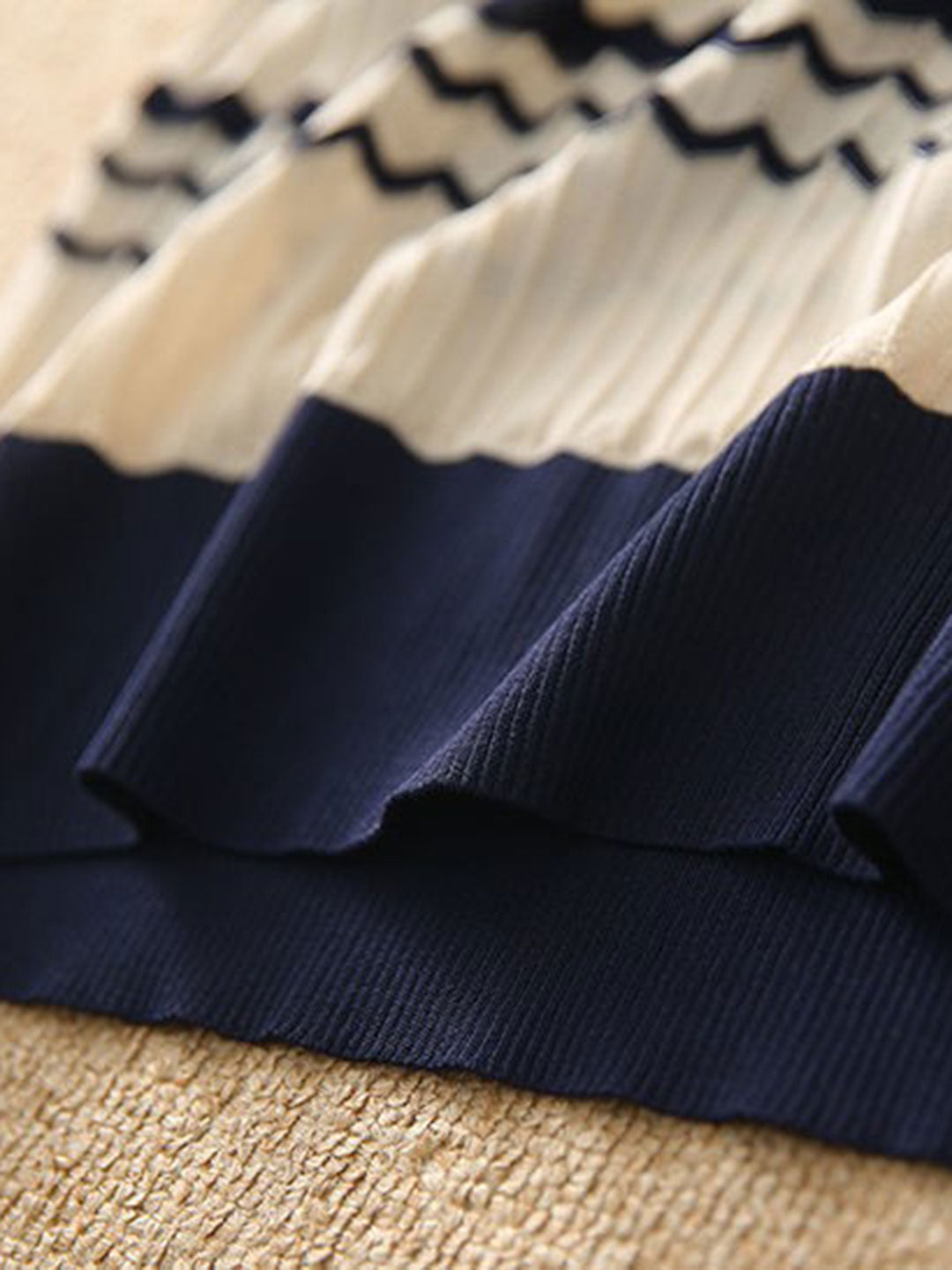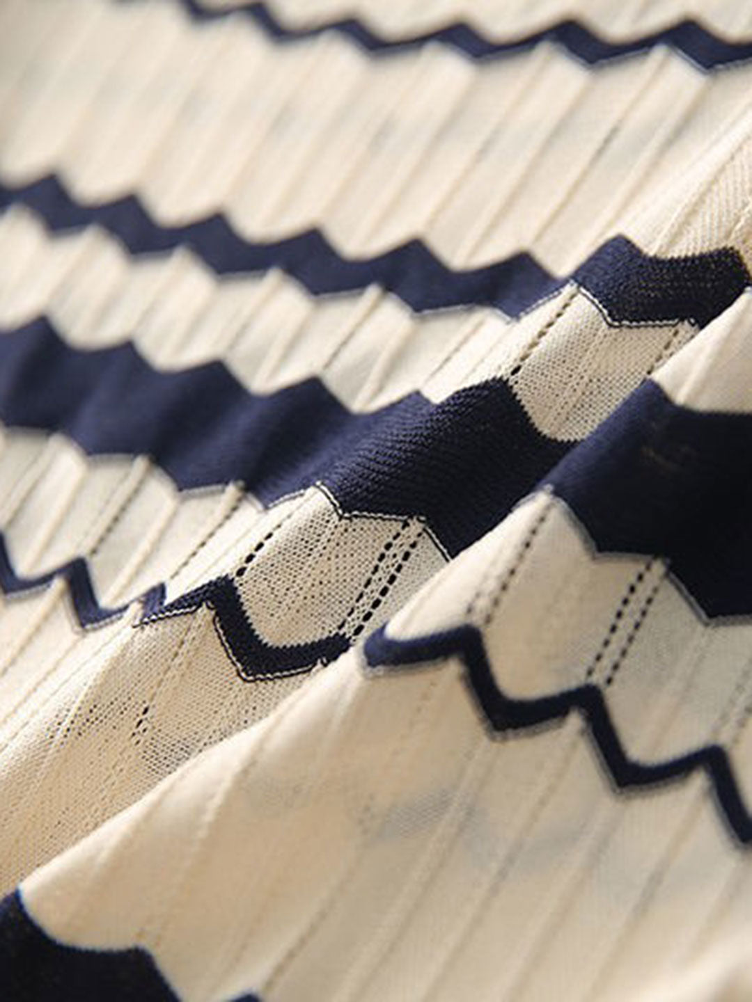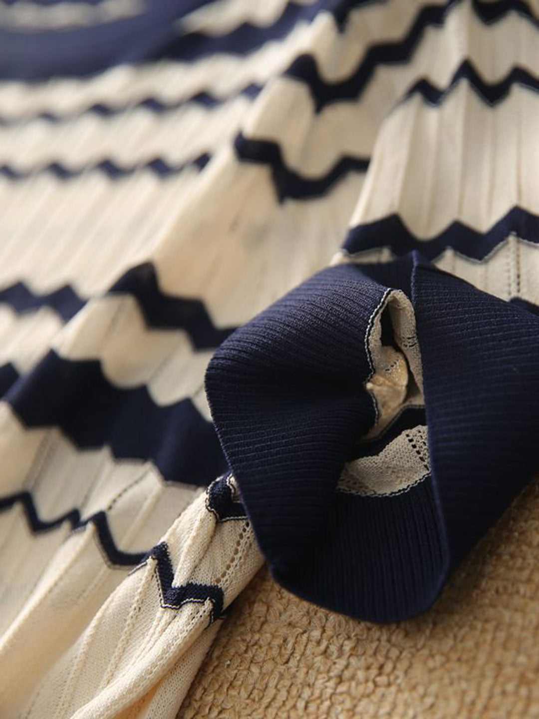 Alexa Casual Crew Neck Jacquard Cutout Striped Sweater