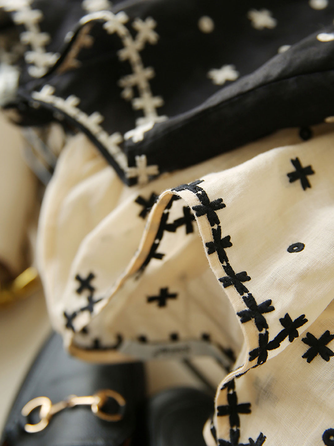 Alexa Classic Embroidered Round Neck Puff Sleeve Top-Beige