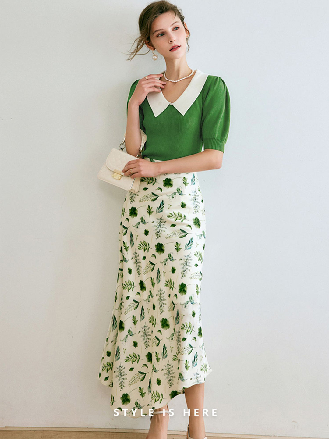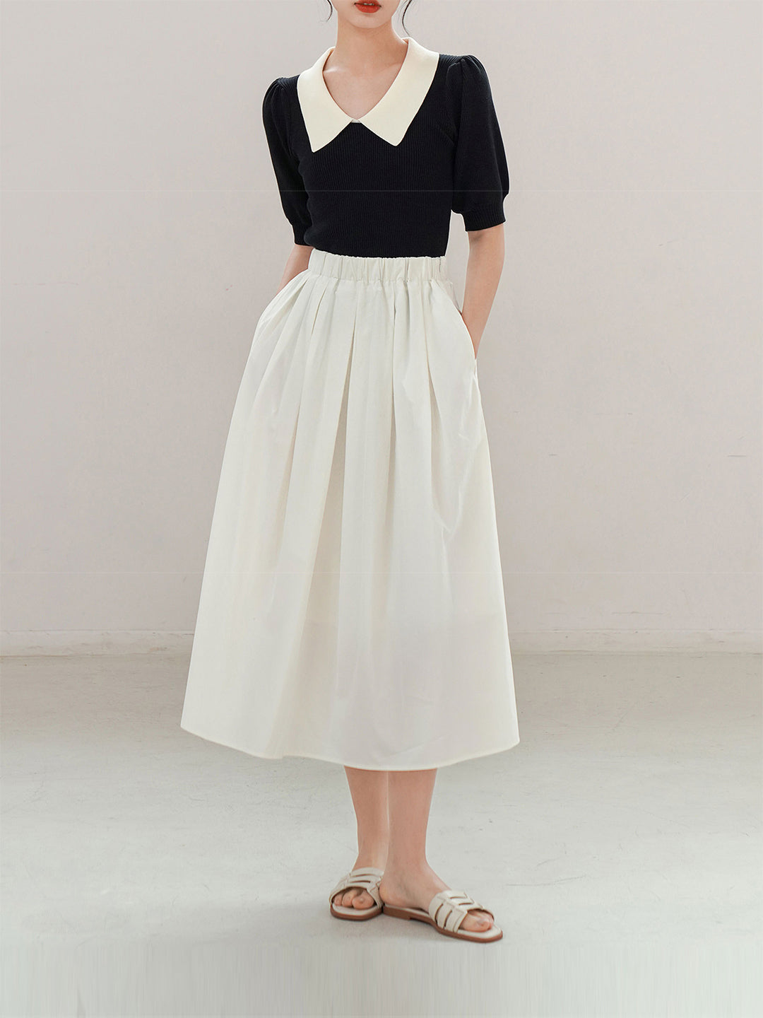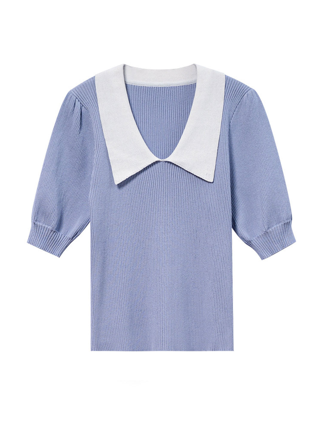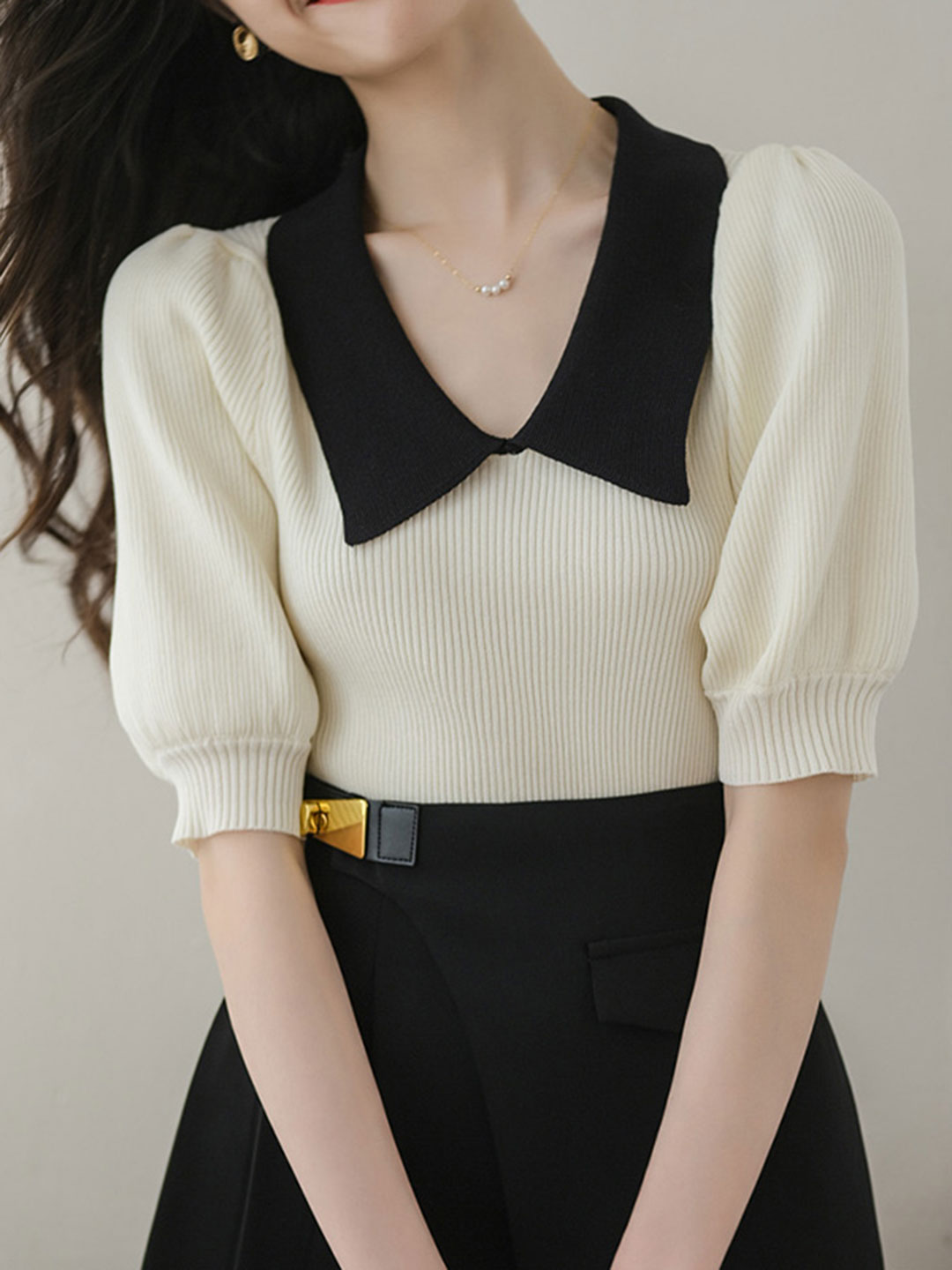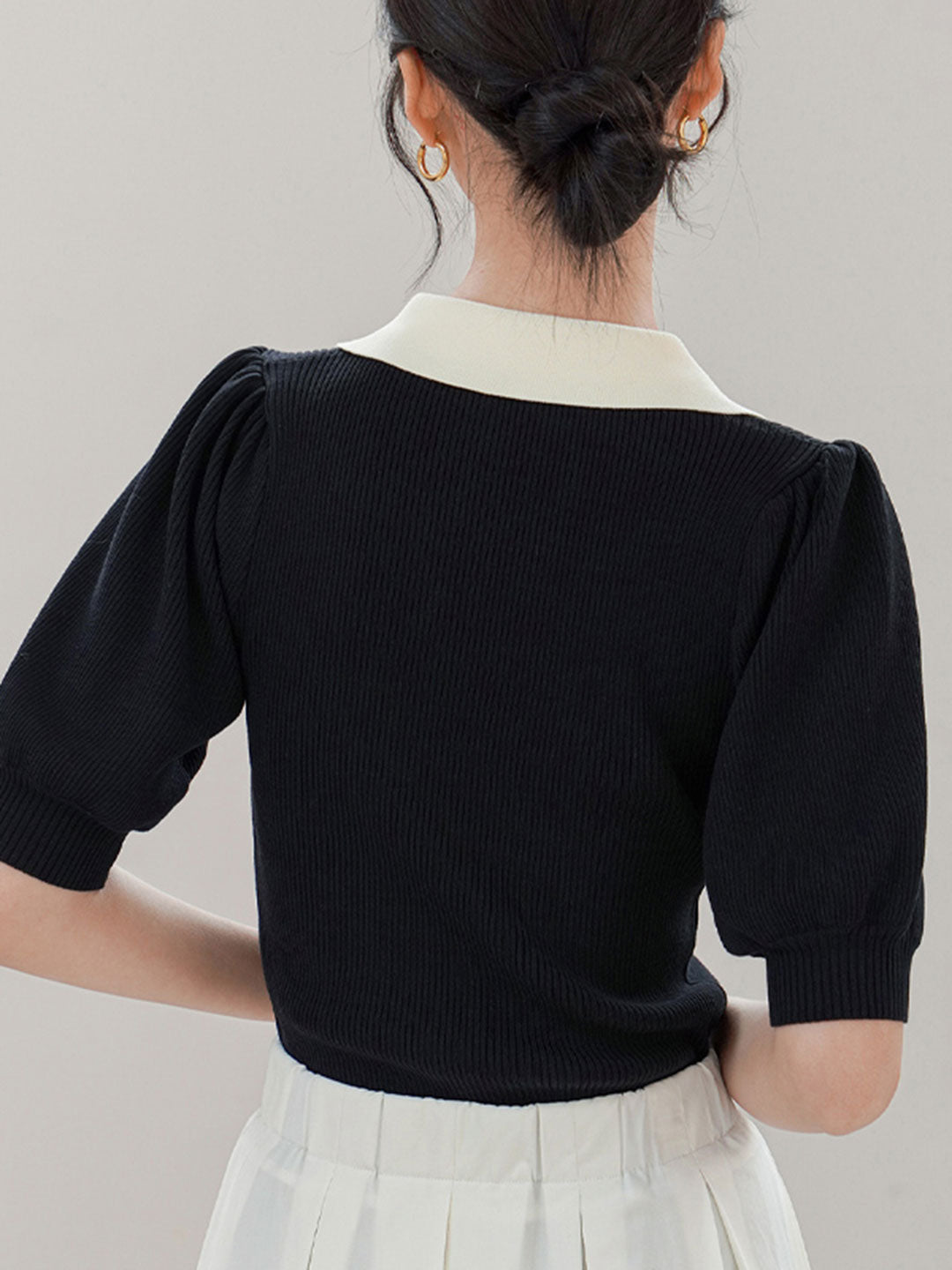 Alexis Retro Lapel Puff Sleeve Knitted Tops-Yellow