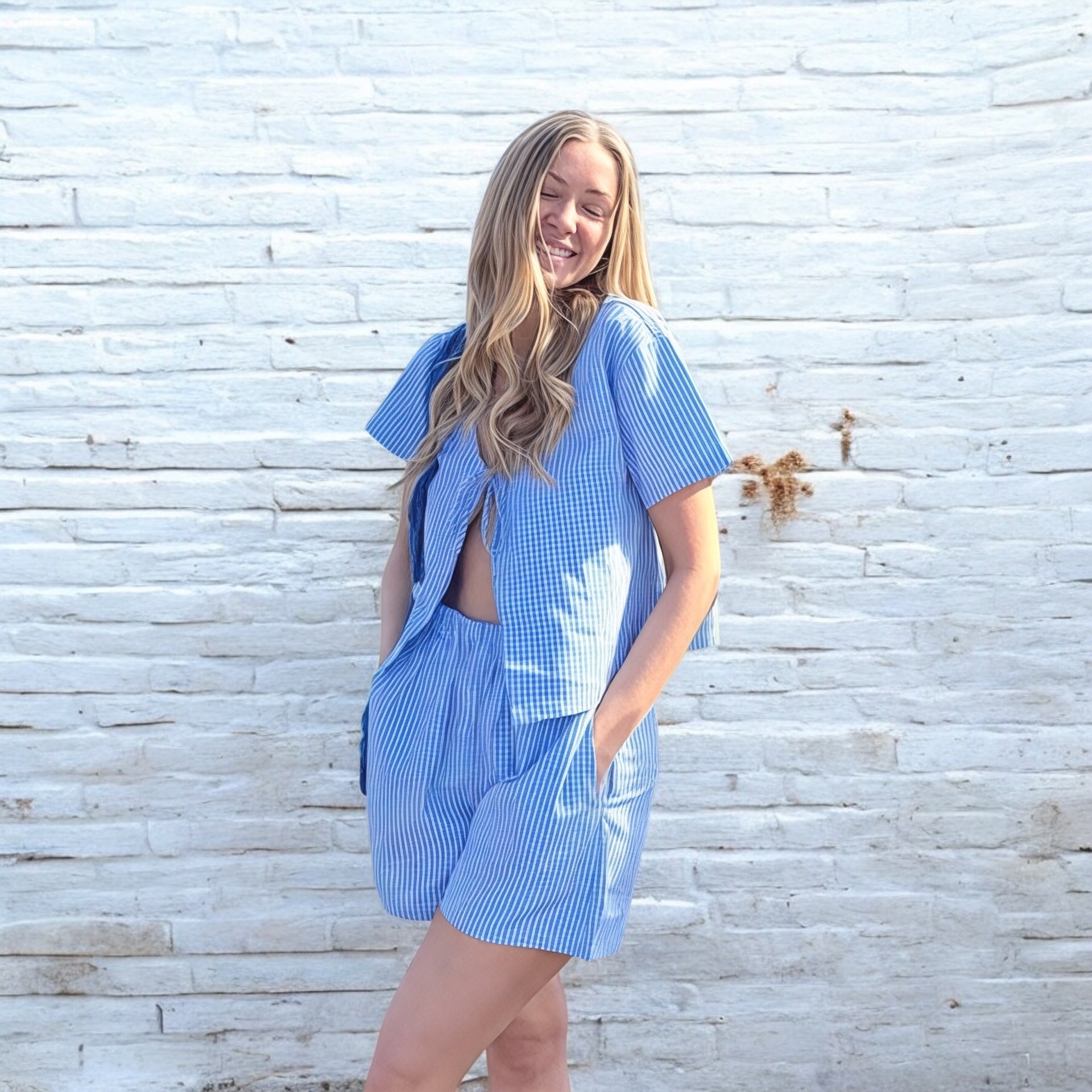 Elevate your summer wardrobe with our Alicia 2 pcs Plaid Matching Set, a chic and versatile ensemble designed to embrace the spirit of the season. This delightful set features a blue and white plaid print that exudes timeless charm, perfect for adding a touch of sophistication to your summer outfits.