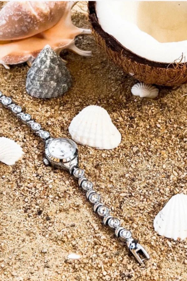 Designed with versatility in mind, the Alina Vintage Watch comes with a sizing kit, allowing you to adjust the length by removing links for a perfect fit. Its waterproof construction and lifelong color warranty guarantee that it remains a staple in your collection for years to come.