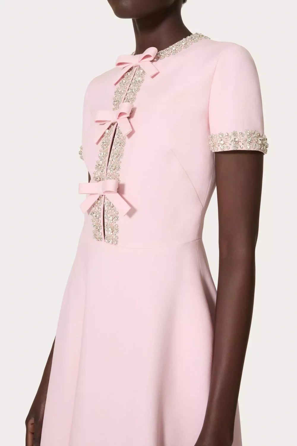 Indulge in luxury with the Alvaia Bow Crystal Embellished Maxi Dress. Featuring a stunning crystal-embellished bow, this maxi dress exudes elegance and sophistication. The soft, flowy fabric and flattering silhouette make it a must-have for any special occasion. Elevate your wardrobe with this exclusive piece.