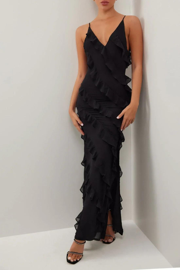 Embrace your femininity with this ruffle zippered long dress. Designed to accentuate your curves and flatter your silhouette, this dress is a must-have for any fashion-forward woman. The cascading ruffles add a touch of romance, while the sleek zippered closure ensures a seamless fit. Whether you're attending a wedding, a dinner party, or a night out with friends, you'll feel confident and beautiful in this timeless piece.
