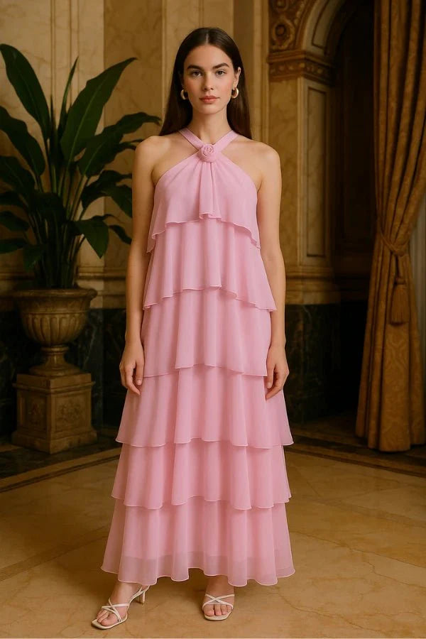 Step into the spotlight with this dazzling party dress—made to bring the energy of the evening to life. Its elegant halter neckline and flowing maxi silhouette make it the perfect choice for festive occasions. Pair it with heels and your favorite accessories for a head-turning look that radiates confidence and charm.
