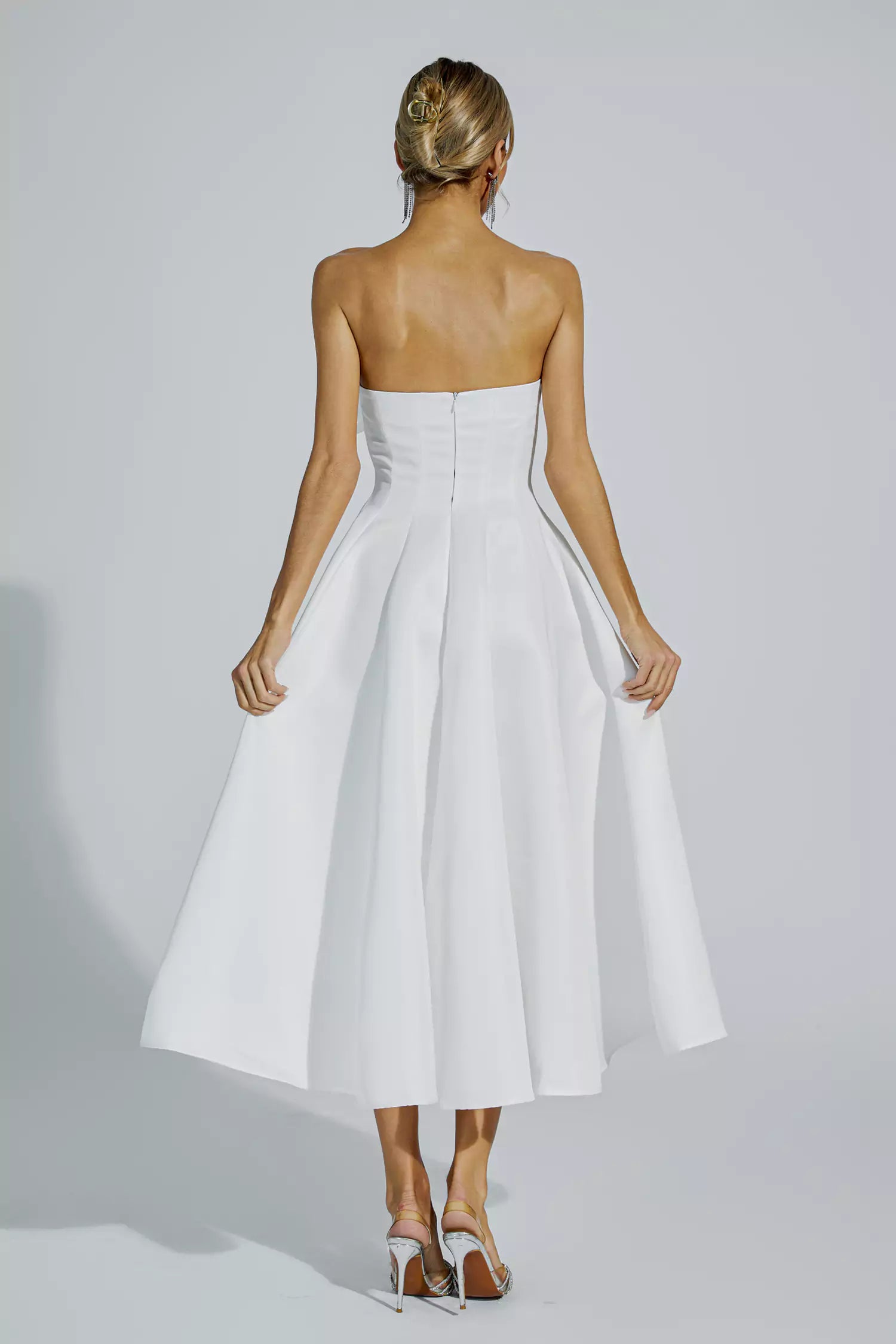 Elevate your elegance with the Andi White Bow Off Shoulder Dress. This elegant, ladylike dress exudes sophistication with its tube top design, perfect for a simple dinner or a formal occasion. The slim waist enhances your figure, while the long dress adds a touch of grace.