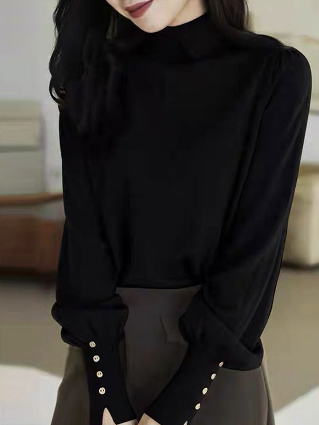 Anna Retro Lapel Balloon Sleeve Knitted Top