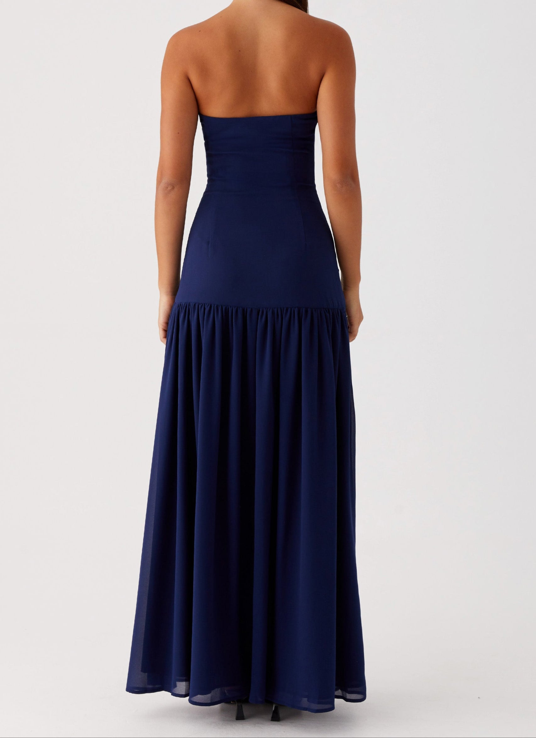 Make an entrance in this strapless maxi dress – a sleek and elegant silhouette crafted to flatter your figure with timeless charm. Designed with a structured bodice and daring front split, it's perfect for weddings, galas, or formal evenings out.