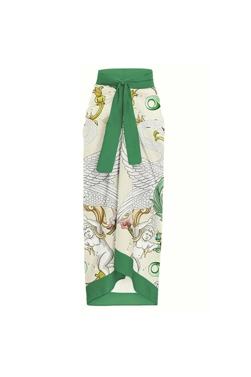 This striking green one-piece swimsuit set is designed to turn heads with its vibrant color and bold backless cut. Featuring artistic floral appliqués that add dimension and flair, the swimsuit flatters the figure with a sleek, curve-hugging fit. The open-back design enhances its sultry vibe while maintaining an air of elegance. Paired with a coordinated cover-up or skirt, it’s a statement piece for any beach escape.