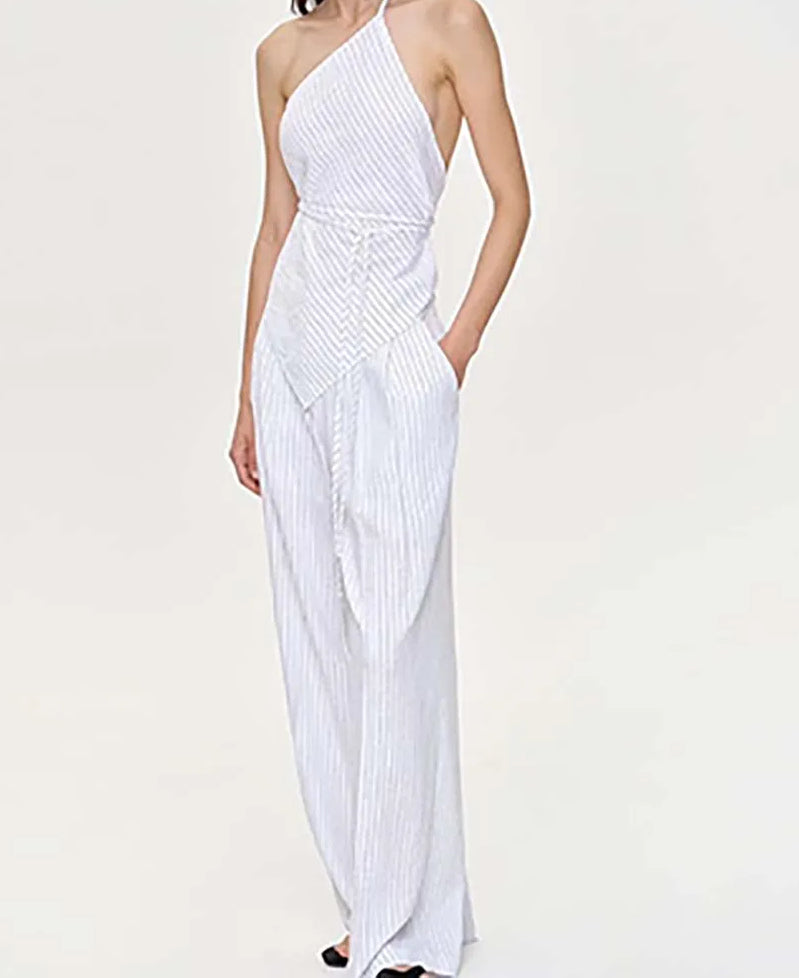 Apricot Print Halter Lace-Up Pants Office Two Piece Set