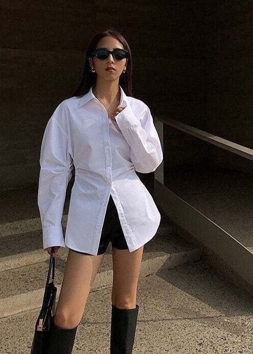 Crafted to maintain its structure while offering flexibility, this longline shirt moves with you throughout the day. Pair it with biker shorts for a street-chic look or wear it layered over sleek trousers for a more polished vibe.