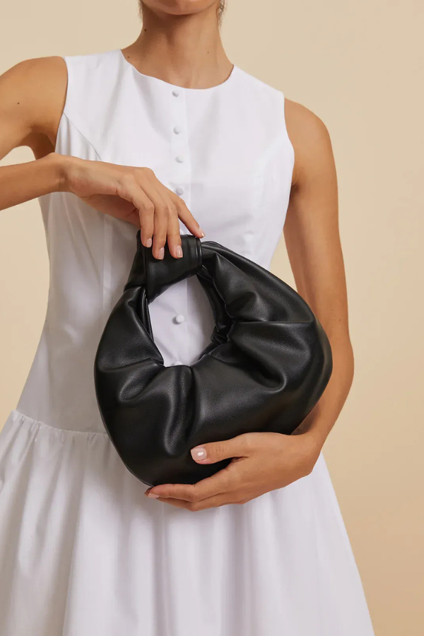 The Astra Knotted Ruched Bag offers a unique and stylish twist to your accessory collection. Crafted from 100% polyurethane, this bag features a knotted ruched design with dimensions of 28 cm in length, 2 cm in width, and 14 cm in height. Its regular fit provides a chic and versatile option for adding flair to any outfit.