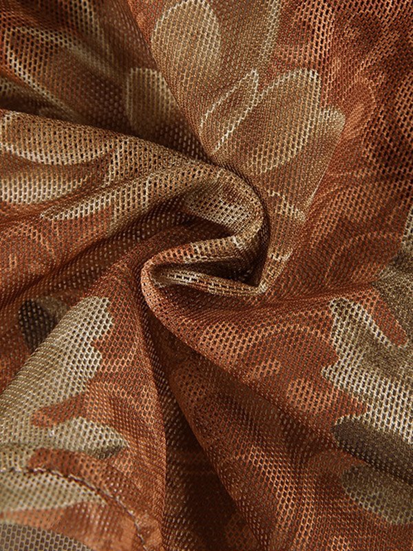 Description: Lace trim, open back, all-over print, asymmetric waistband