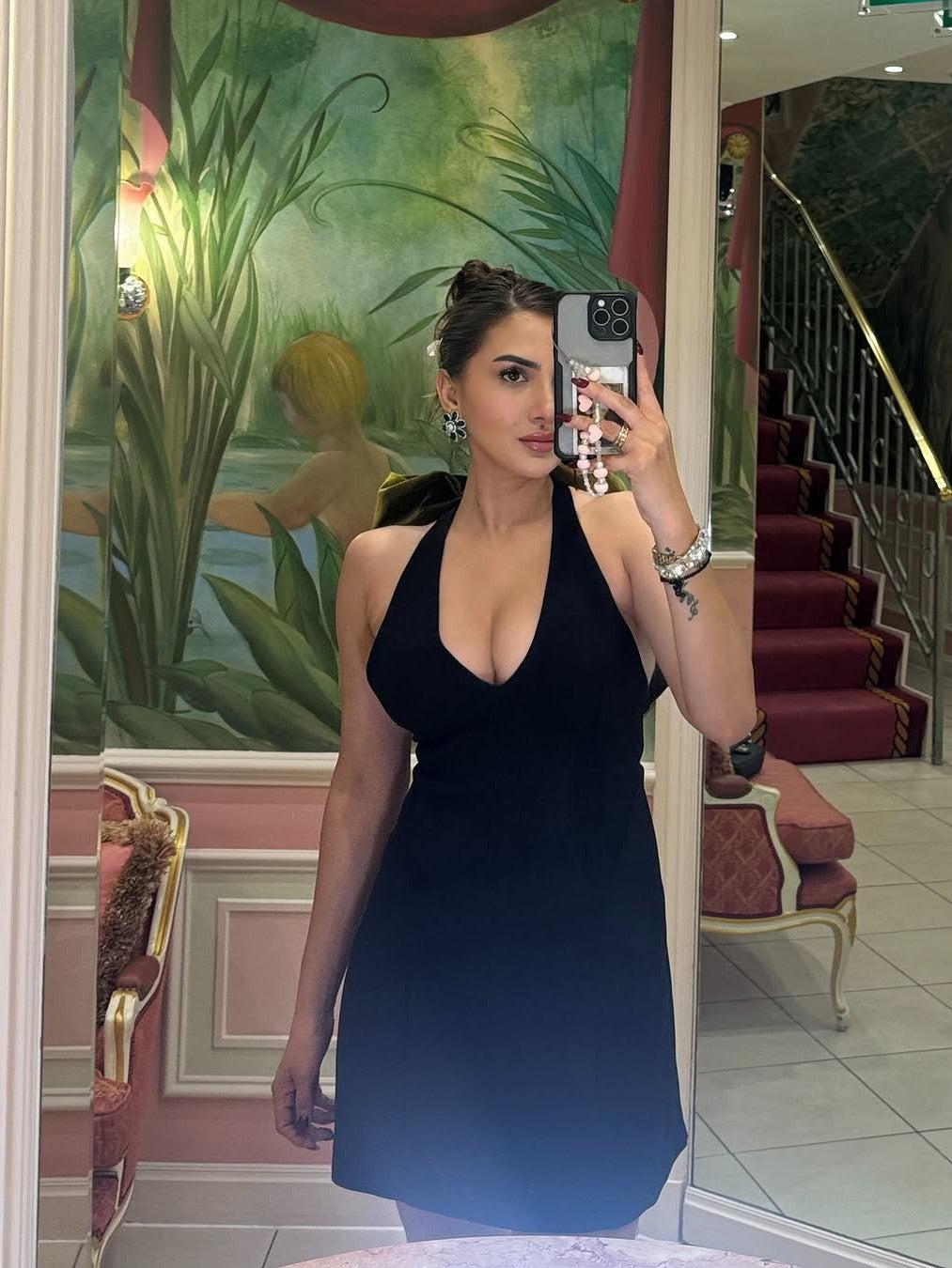 Autumn Velvet Oversized Bow knot Decoration Dress