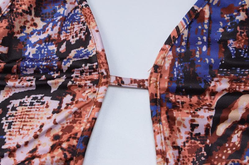 Backless hollow out halter self tie contrast print cut out maxi dress