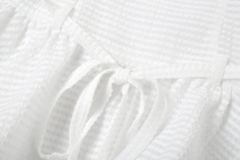 Backless self tie ruched textured gloves solid tube mini dress-final-sale