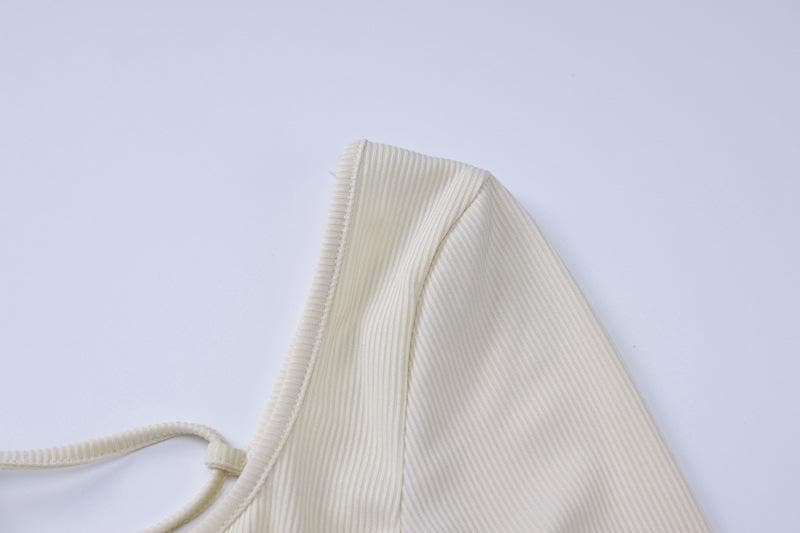 Backless solid long sleeve lace up ribbed square neck jumpsuit