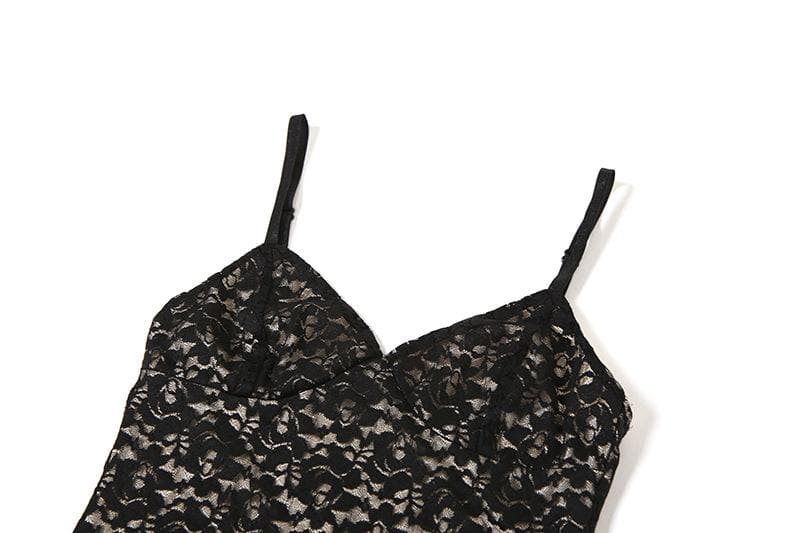 Backless v neck lace low cut cami maxi dress