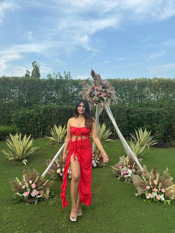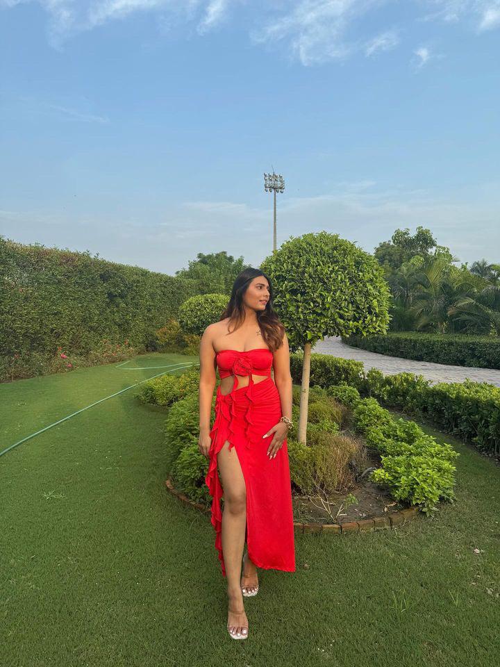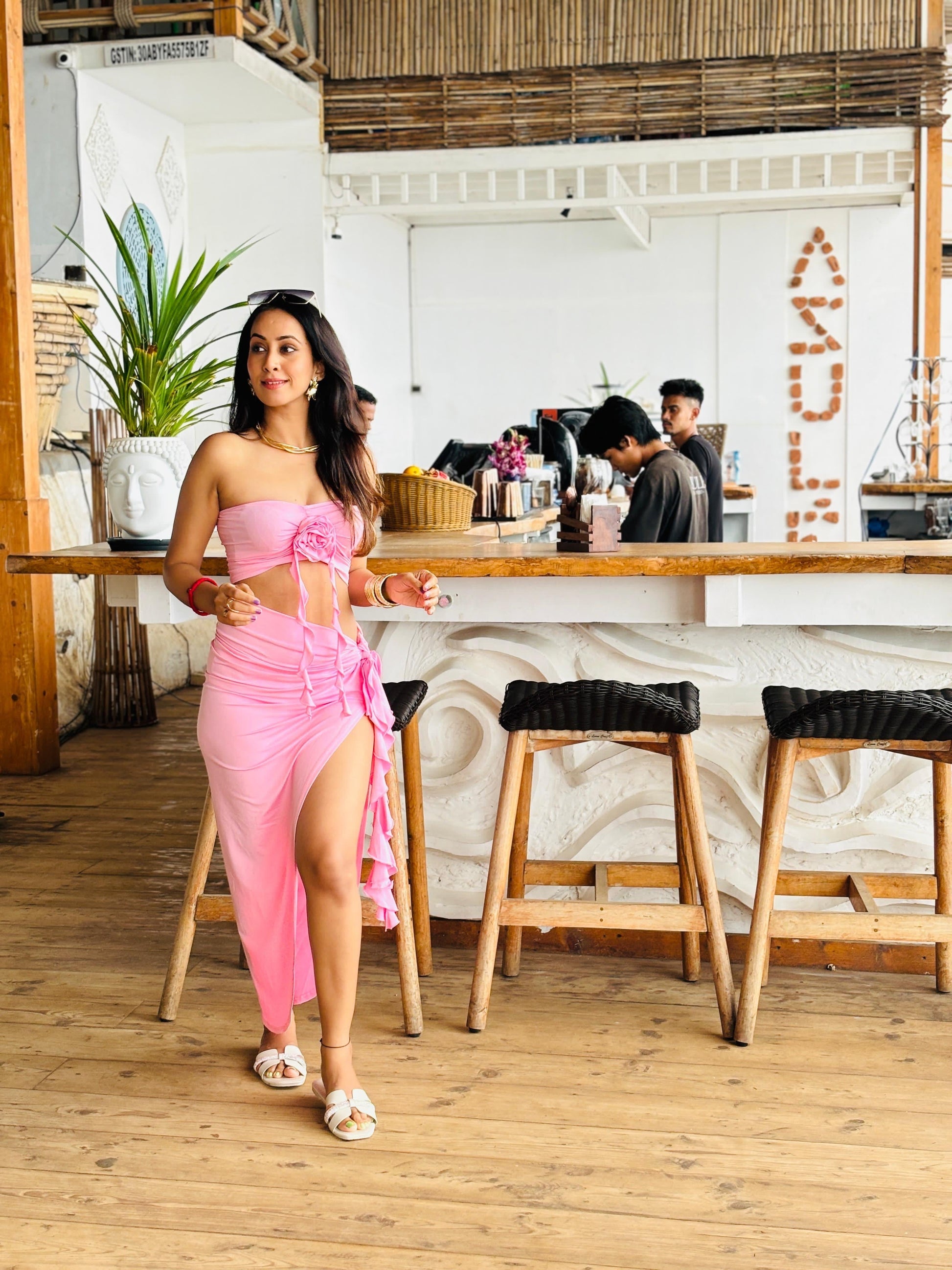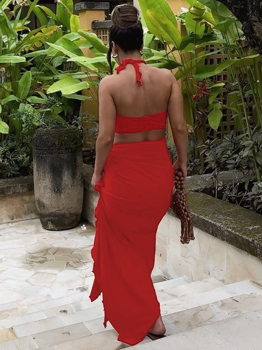 Bandeau Tube Top High Split Lace Up Applique Skirt Coord Set