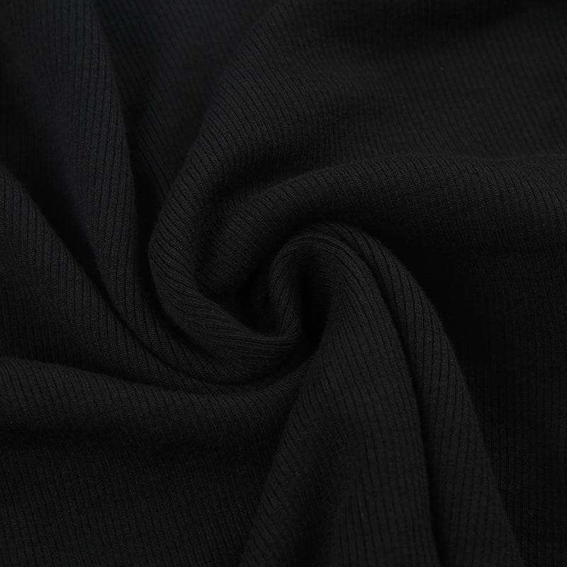 Bat pattern contrast long sleeve button halter 2 piece top
