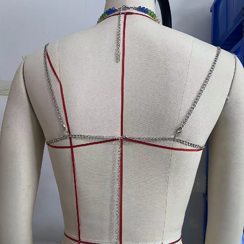 Beaded contrast halter hollow out tassels backless cami cut out top