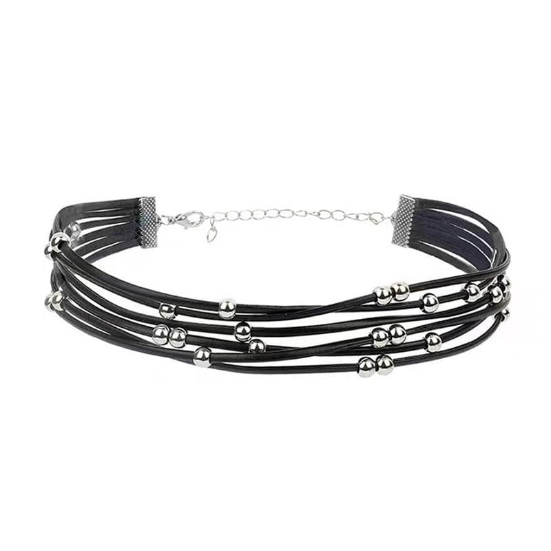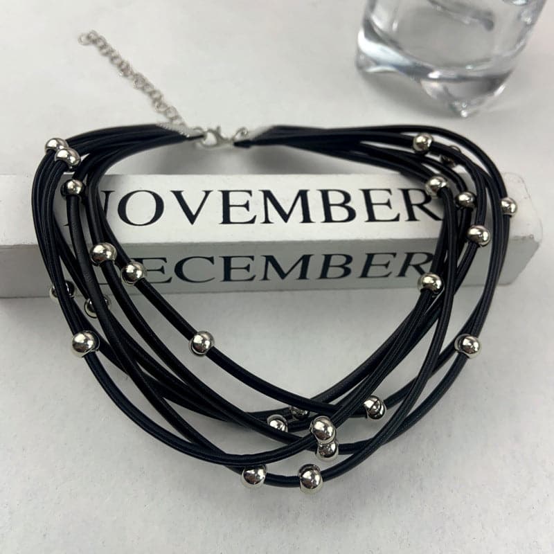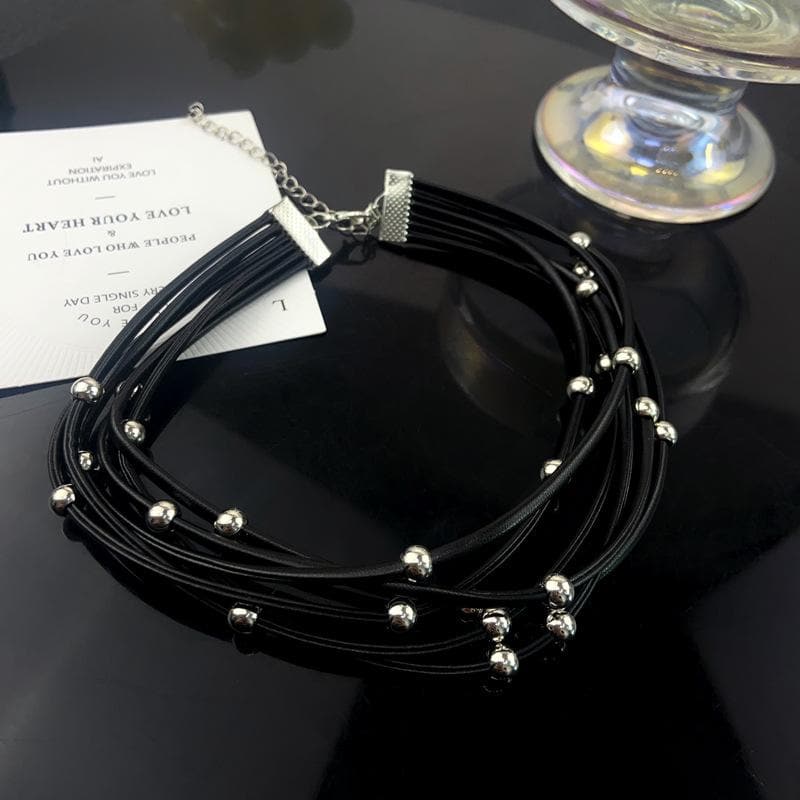 Beaded layered chain choker necklace