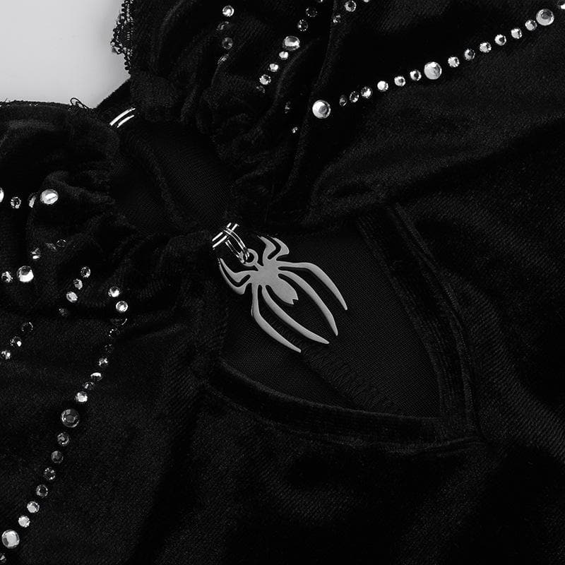 Beaded o ring hollow out lace hem cami cut out mini dress