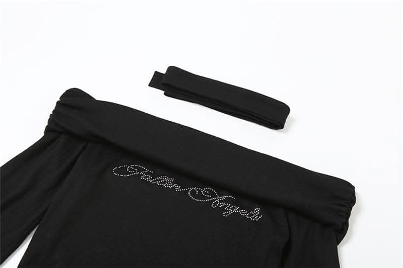 Beaded off shoulder long sleeve ruched solid top-final-sale