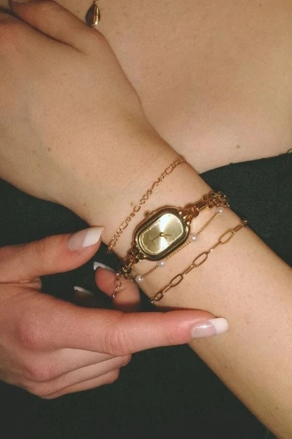 The Belanny Watch embodies a sophisticated fusion of strength and elegance. Its bold round dial paired with a gold-plated stainless steel case gives it a luxurious edge. Blending classic charm with modern aesthetics, it complements both everyday looks and refined evening outfits.