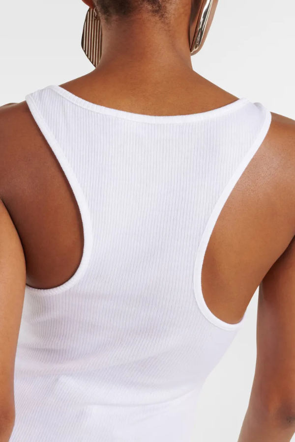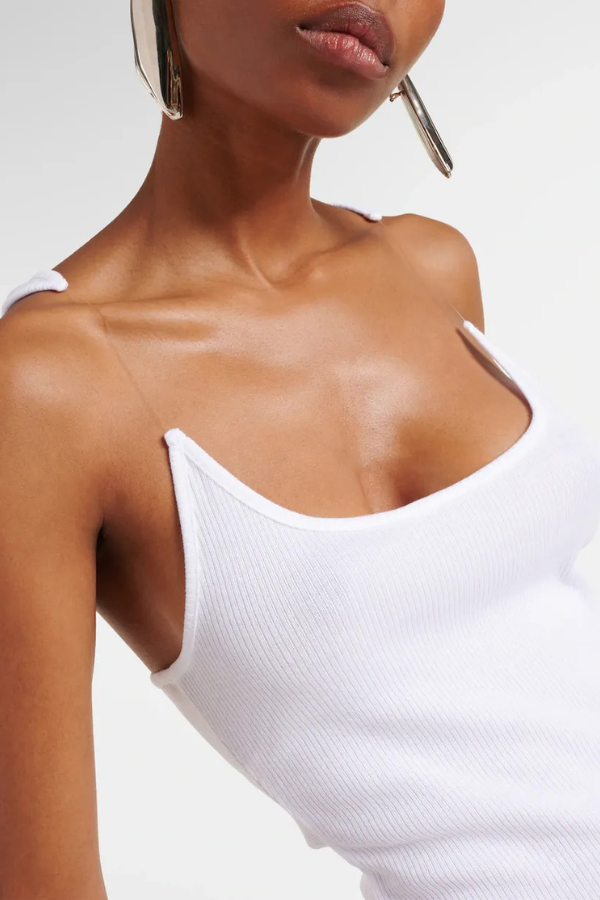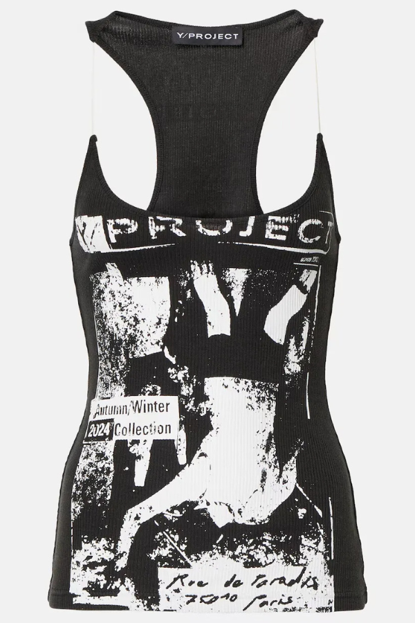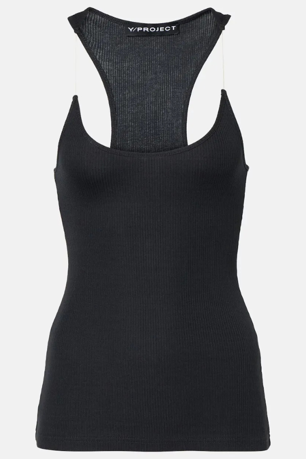 - The standout feature of this tank is the illusion of floating straps, adding a modern, futuristic edge to your look.