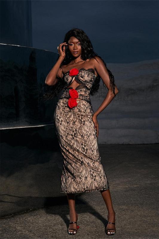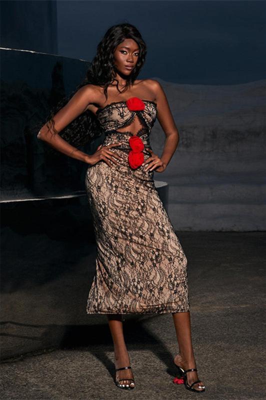 Betsy Flower Applique Cut-out Lace Midi Dress