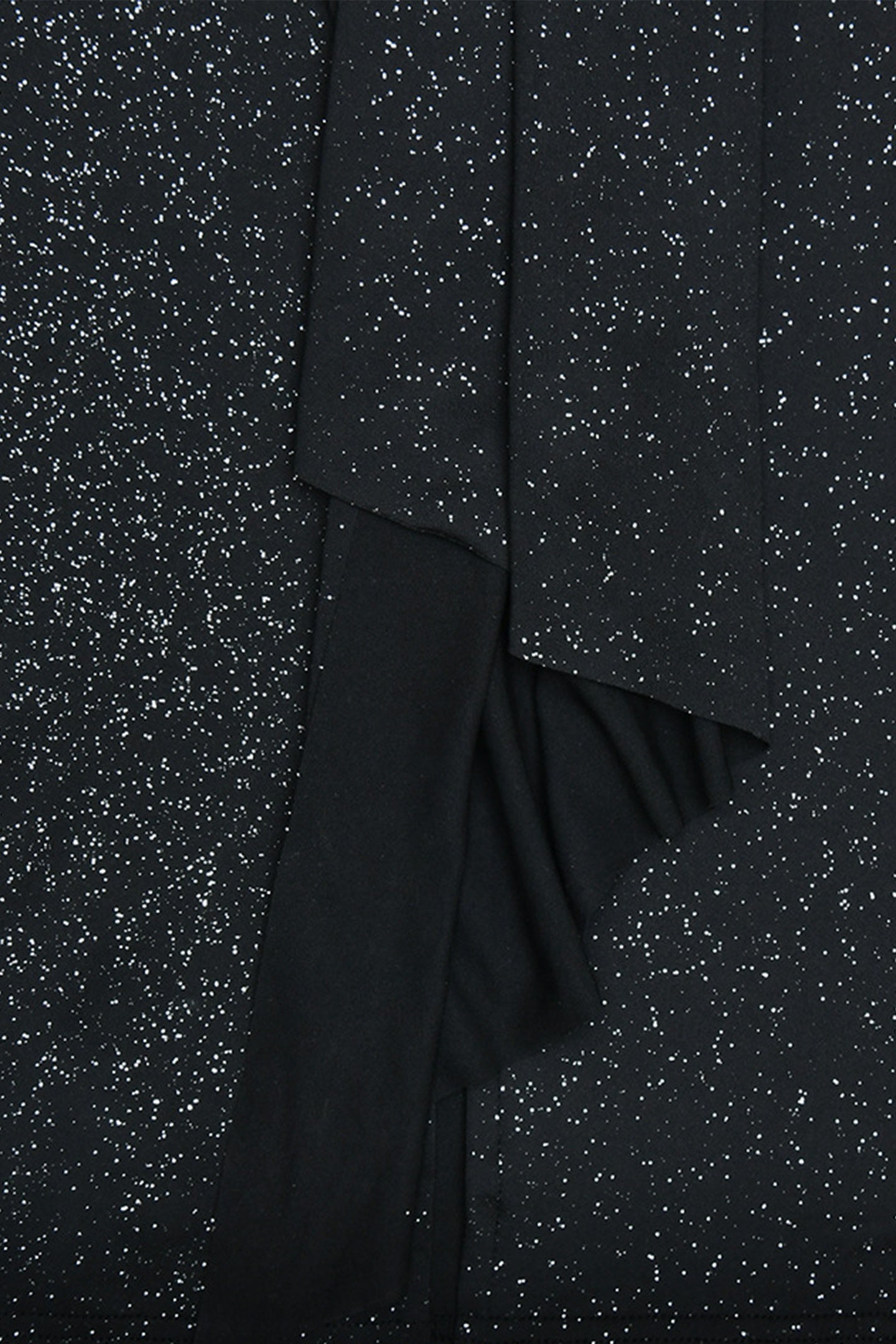 Deep V-Neckline, Ruched Detailing, Thigh-High Split, Elegant Long Sleeves, Maxi Length.