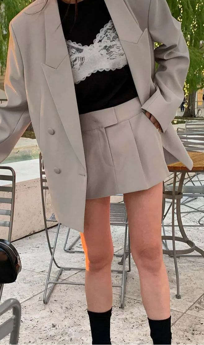 Black Off Shoulder Pleated Mini Office Two Piece Set