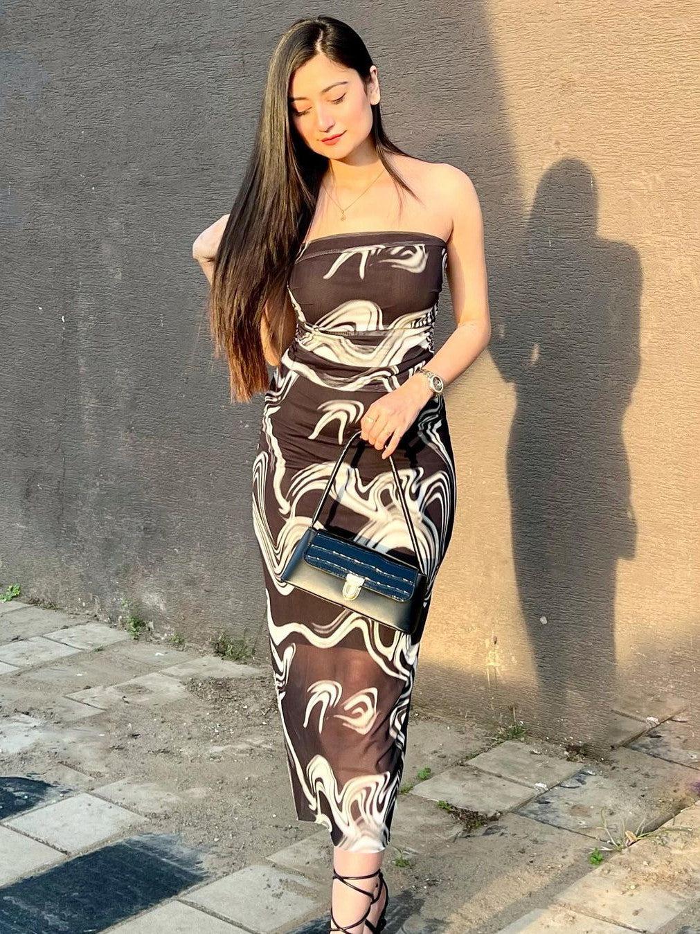 Black & White Tie and Dye Tulle Tube Dress